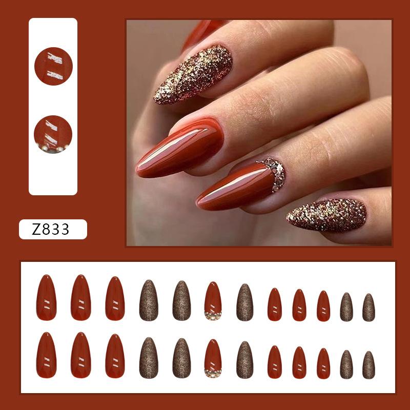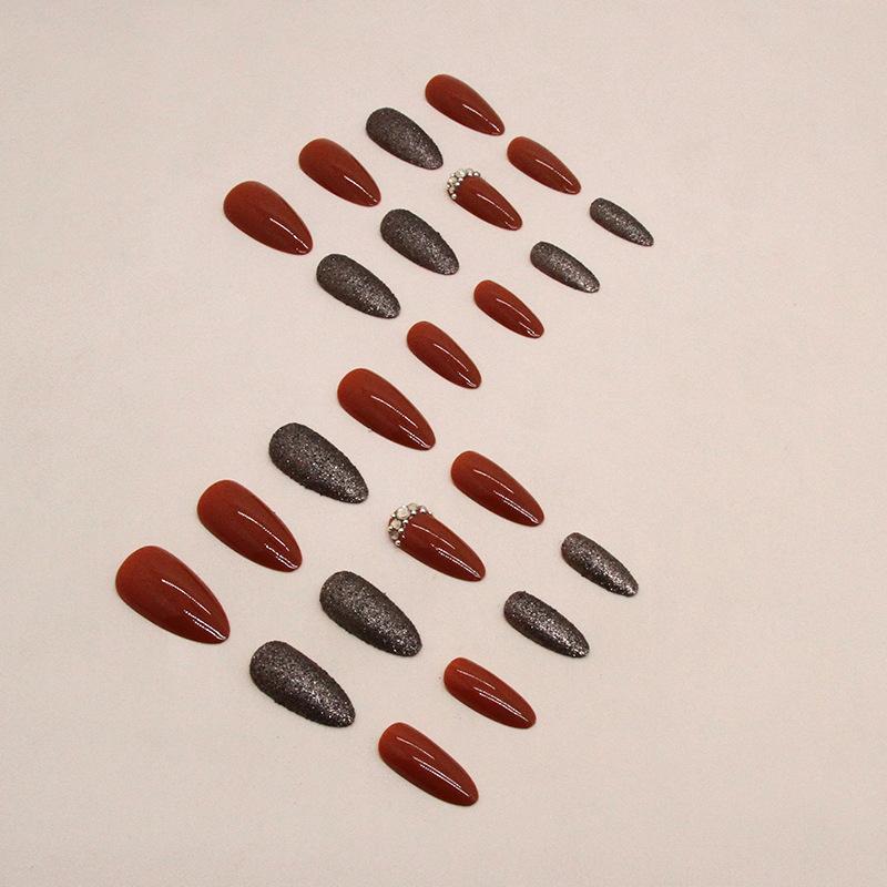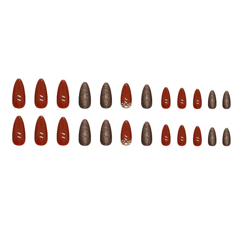 Glitter champán rojo marrón almendra diamante uña belleza pieza chica dulce moda todo-fósforo uña postiza producto terminado mayoreo