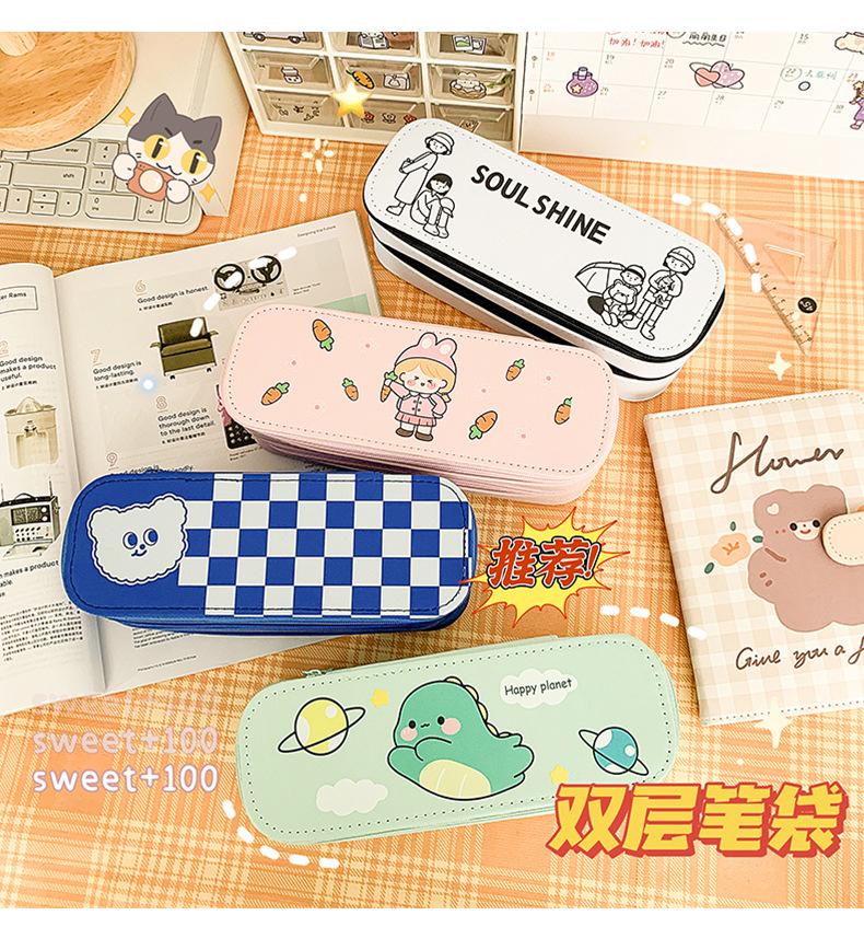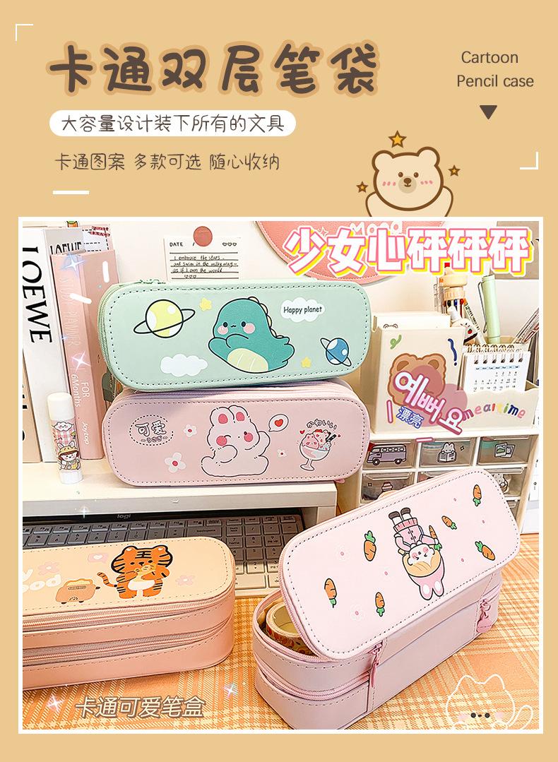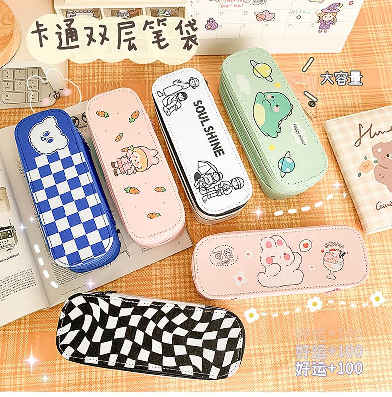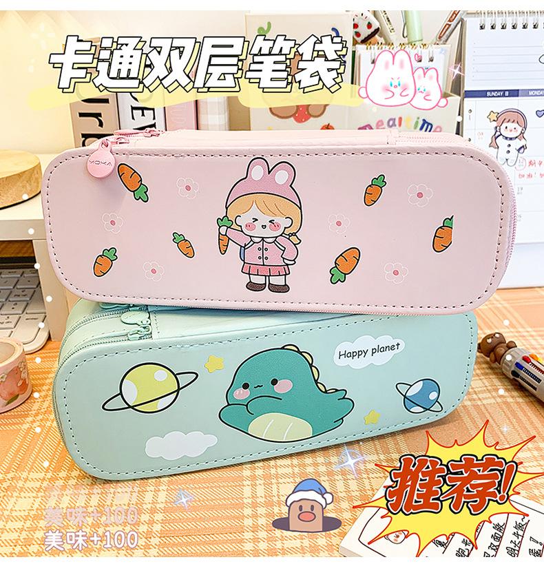 Estuche doble capa para niños Regalo para estudiantes útiles escolares almacenamiento gran capacidad caja de papelería estuche multifuncional regalo
