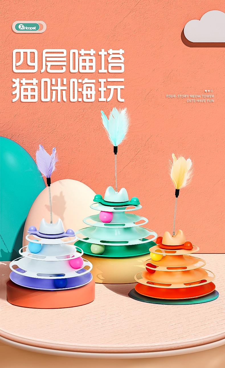 [Nombre]: HOOPET Torre Espacial Tocadiscos para Gatos de Tres Capas (Púrpura Hibisco/Verde Menta/Rosa Odín)