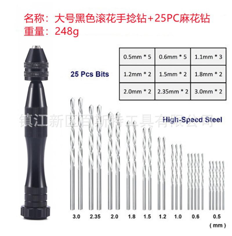 37pc: large black knurled hand twist drill +25pc twist drill + PCB drill 0.3-1.2 + vise