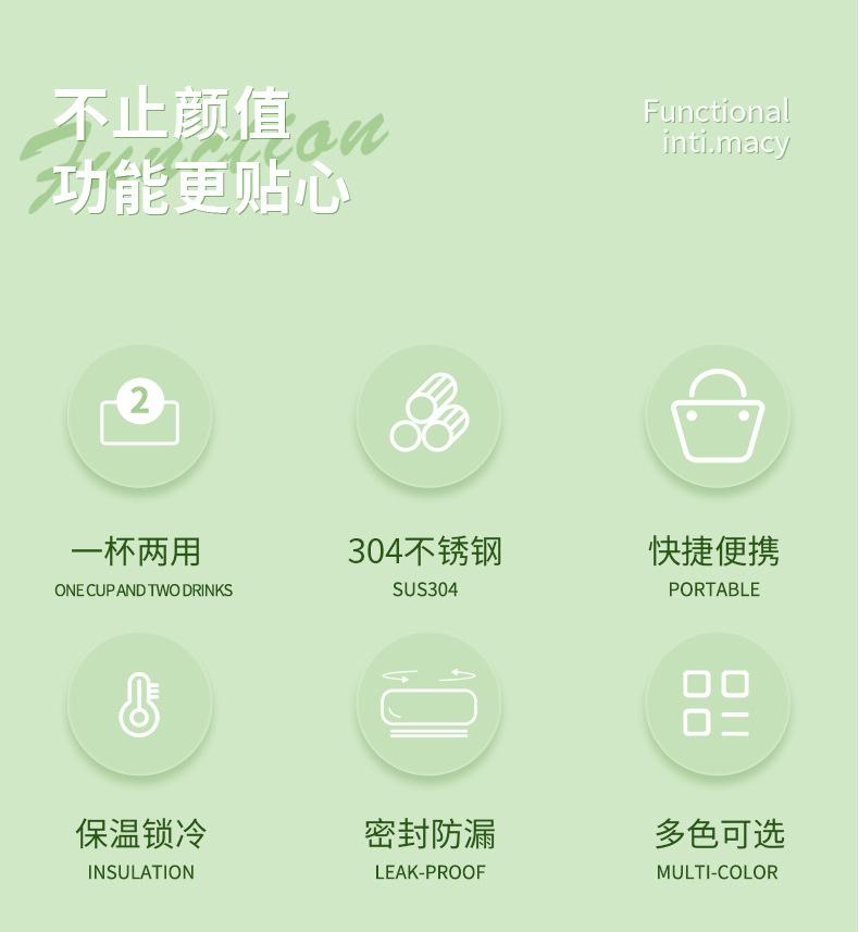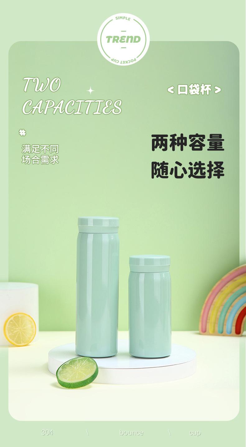 Termo portátil de acero inoxidable 304 de doble capa con bolsillo al vacío, simple, para estudiantes, para el hogar