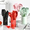 Juego de 7 utensilios de cocina de silicona, espátula, cuchara sopera, espátula con rejilla de almacenamiento, juego de utensilios de cocina de silicona especial antiadherente, personalización