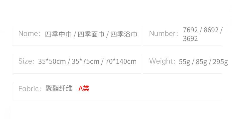35*50 (medium towel/children's towel), 35*75 (towel), 70*140 (bath towel)