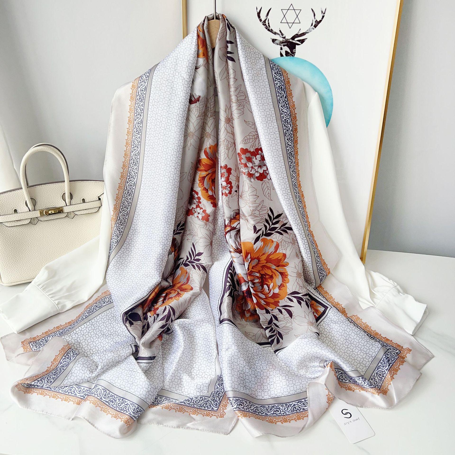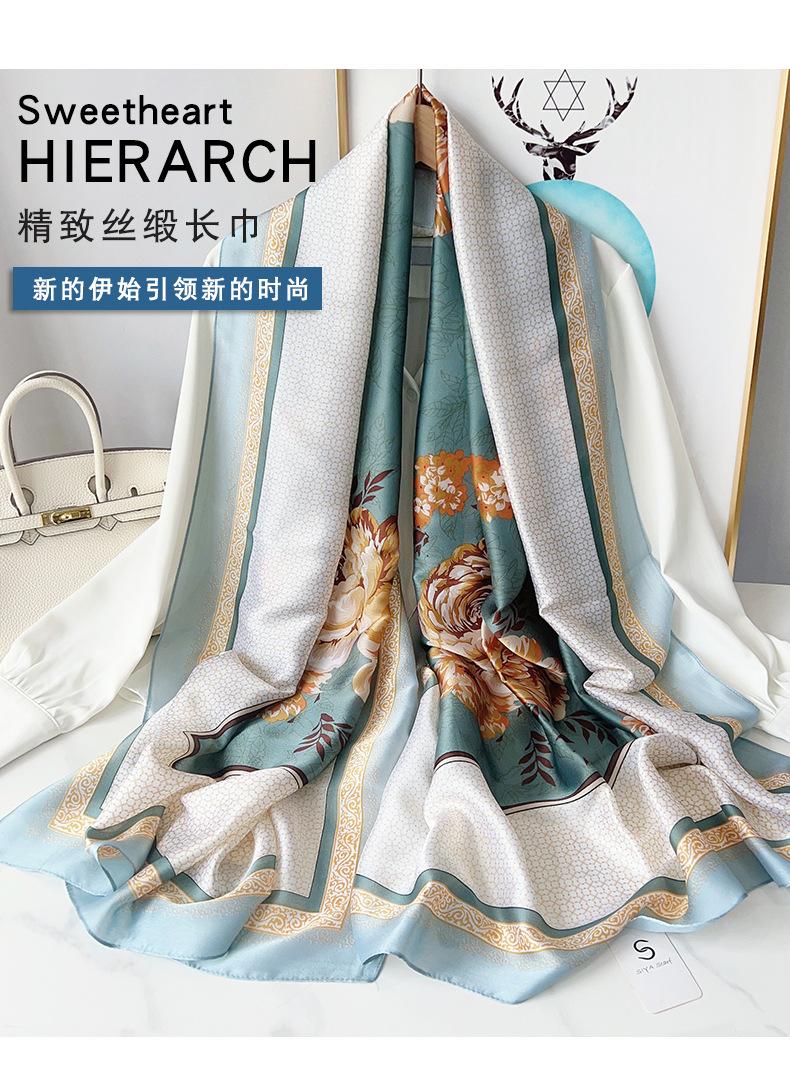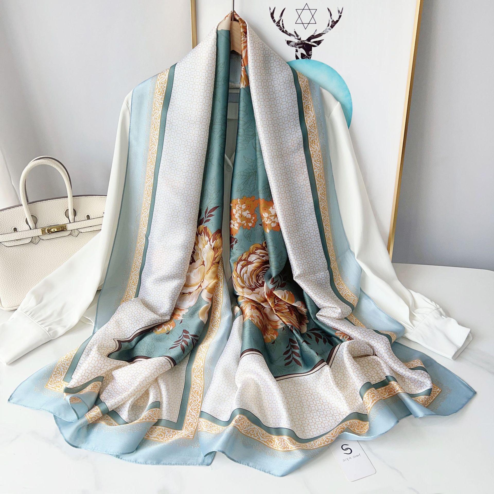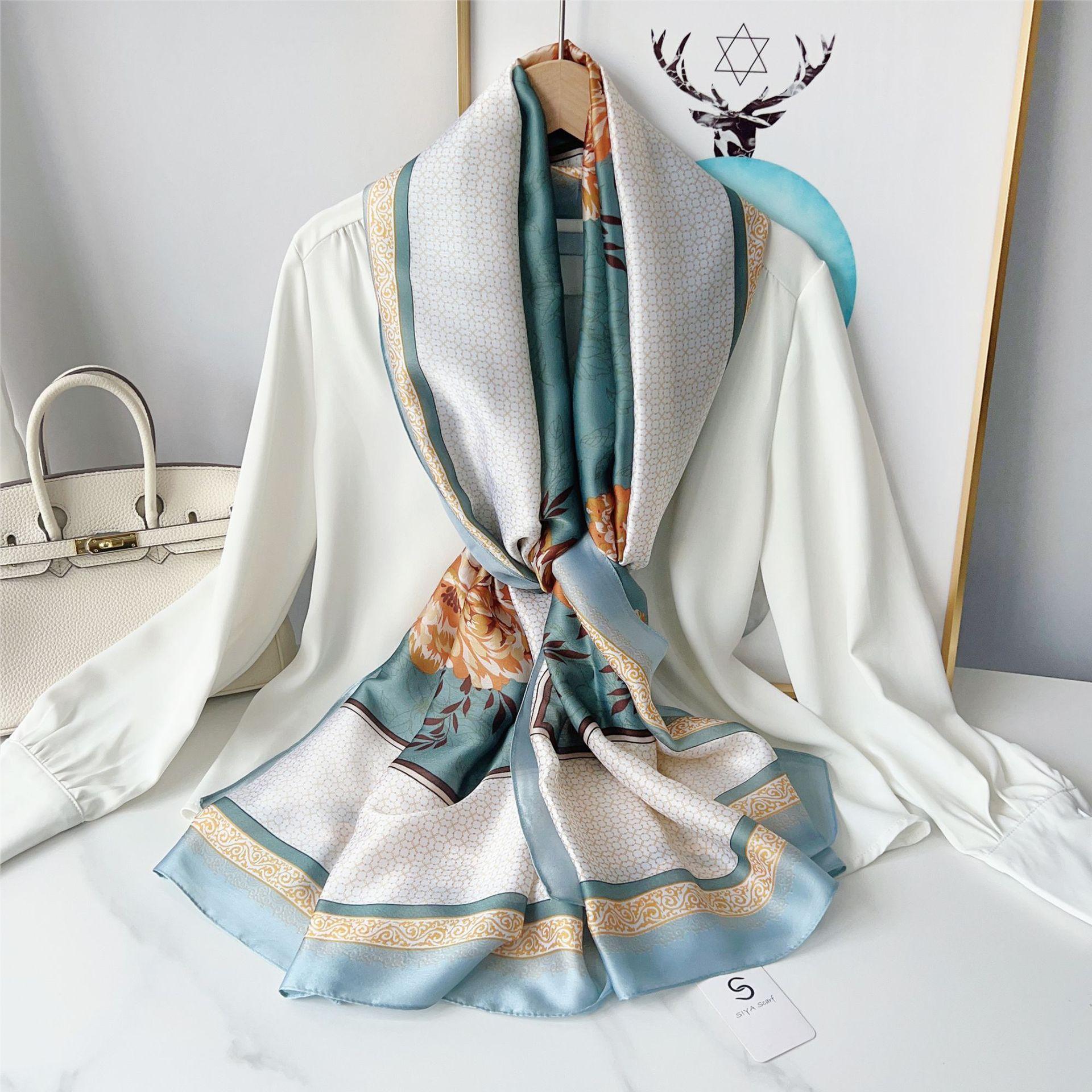Compra Bufanda larga estampada de seda sintética para mujer, chal fino de verano con protección solar, elegante y a la moda, ideal para viajes y fotos. al por mayor en Joom.pro