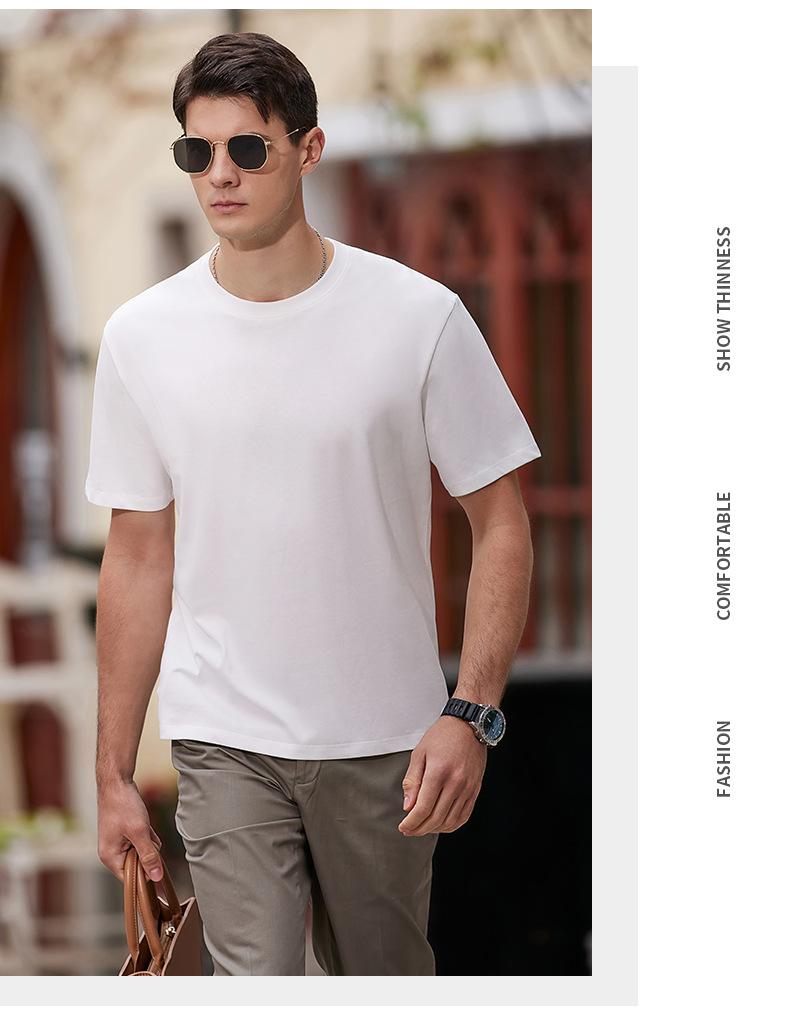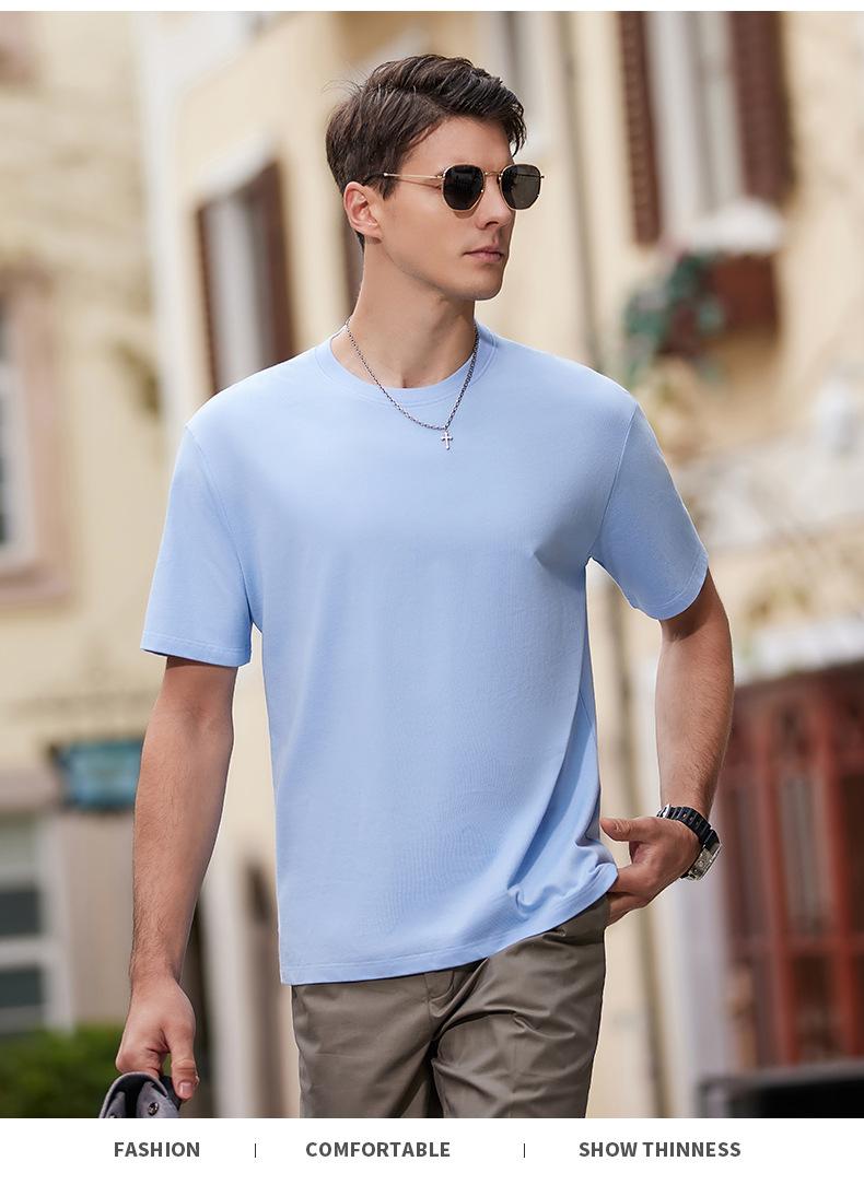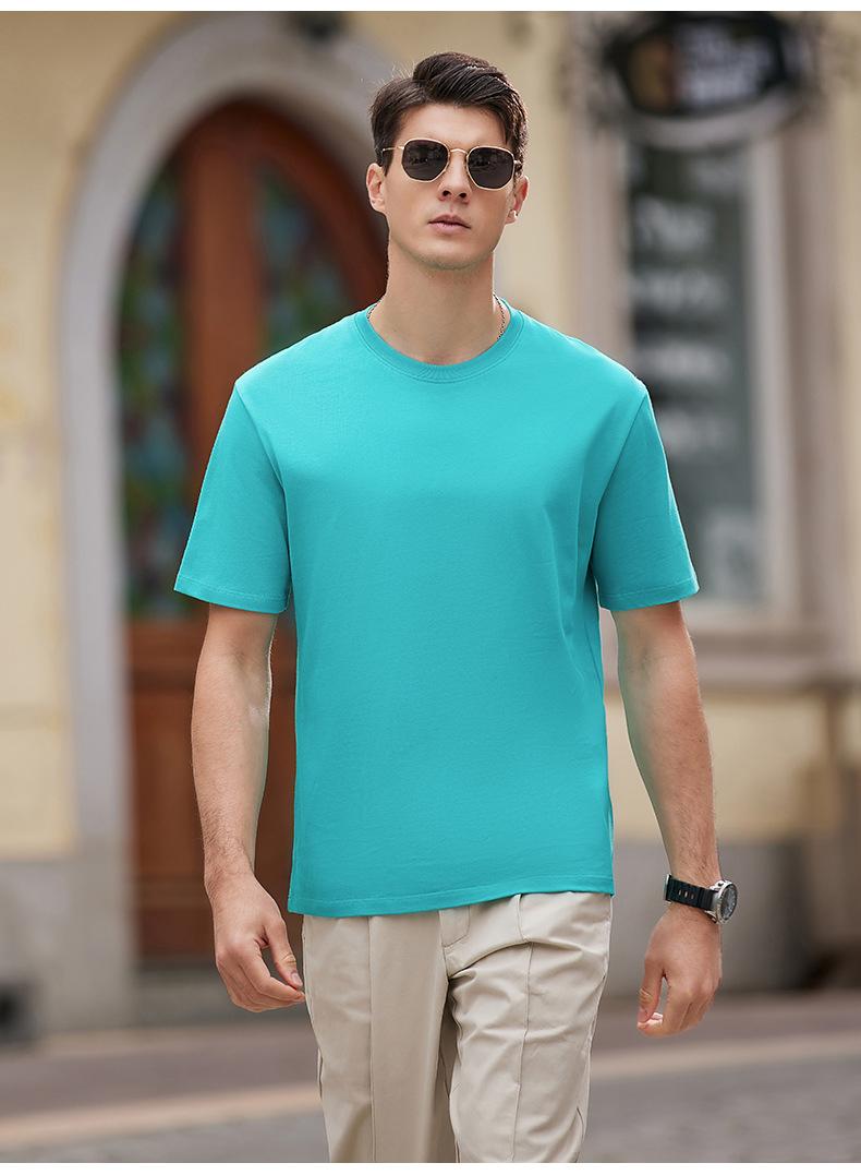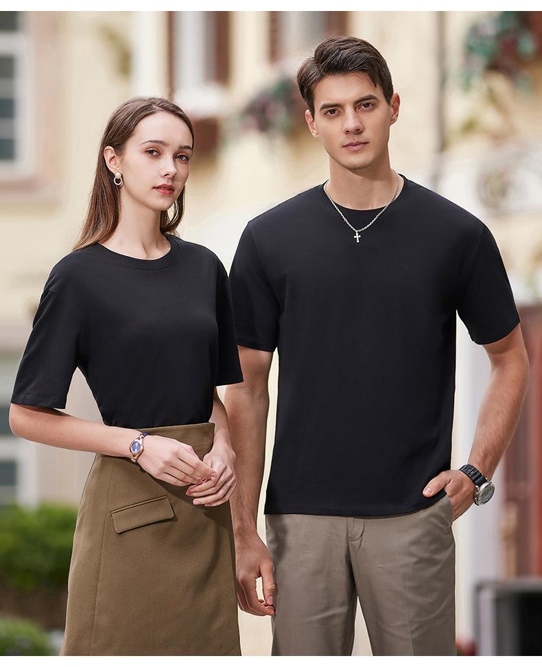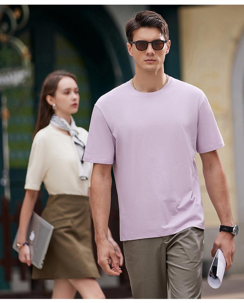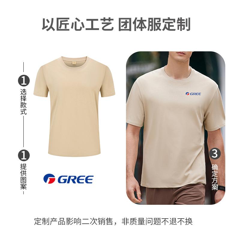 2025 Nueva Camiseta Publicitaria de Algodón Puro de 240g Logotipo Personalizado Mercerizada Antibacterial Cuentas Camiseta de Manga Corta Cuello Redondo Ropa de Trabajo en Equipo