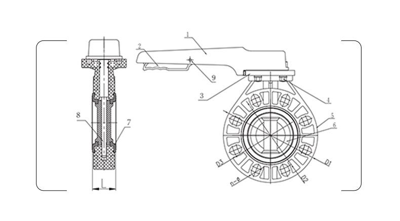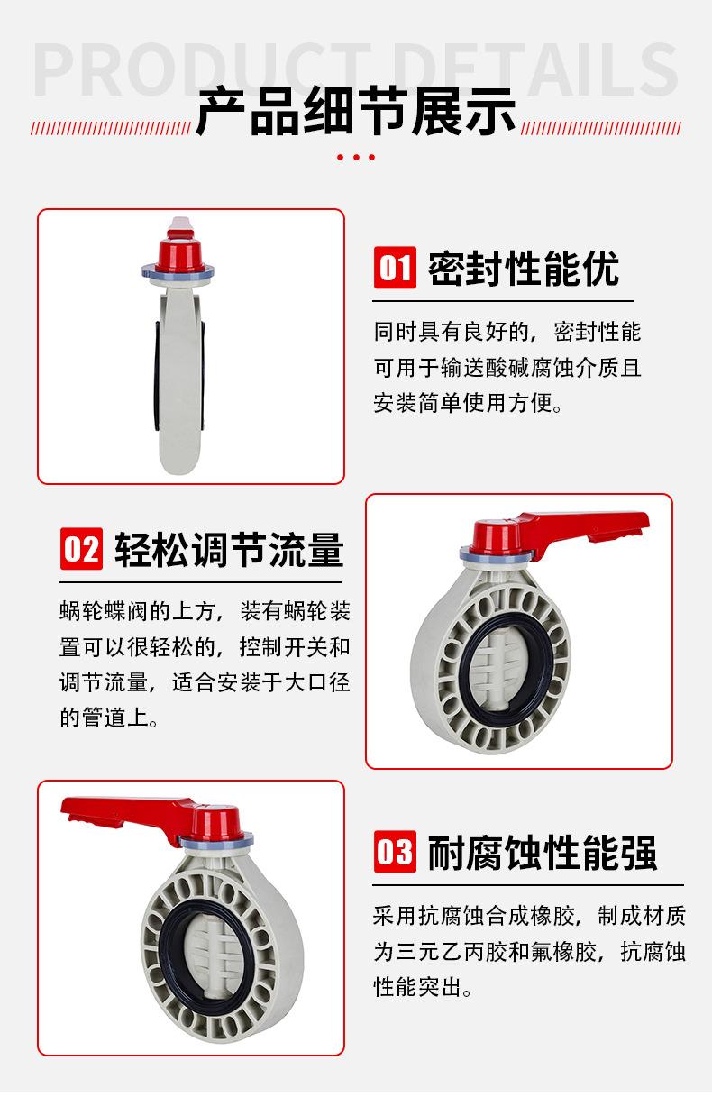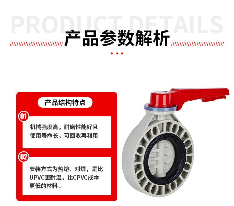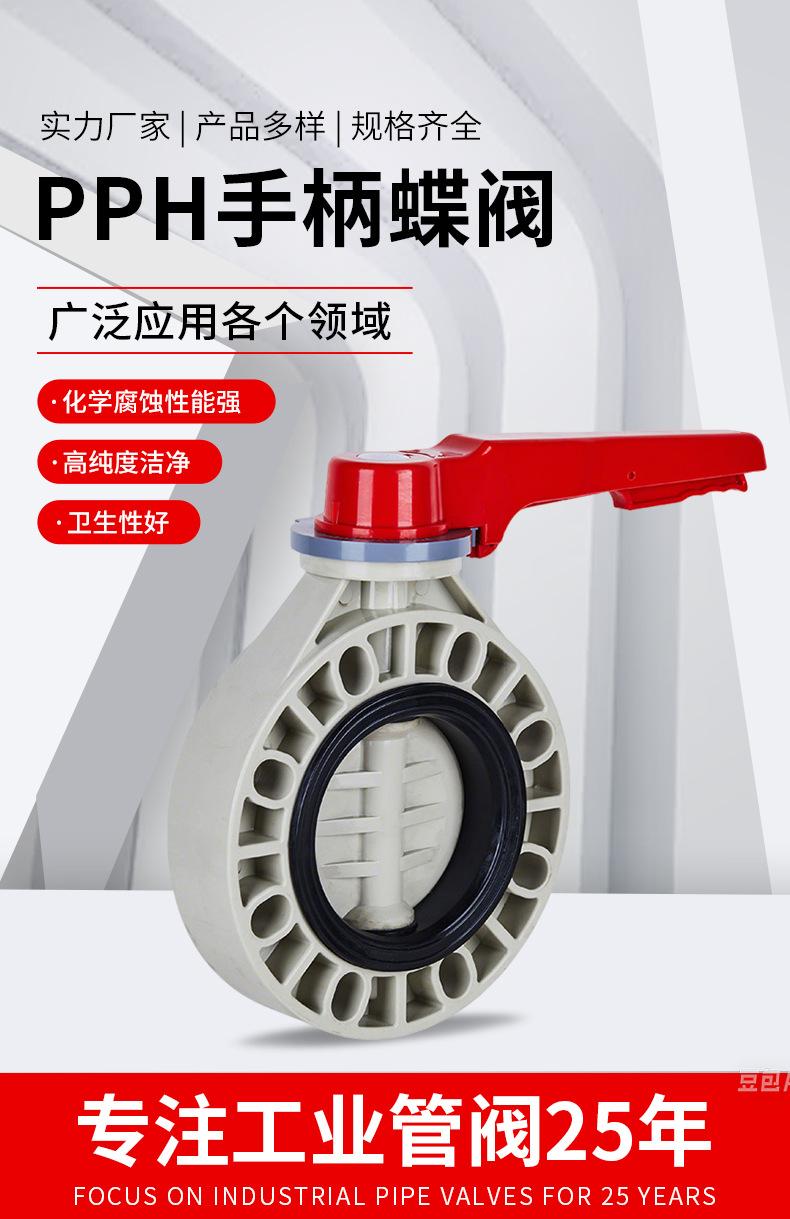 Válvula de mariposa de plástico con mango PPH, válvula química de fábrica Kaixin KXPV, válvula de mariposa de oblea anticorrosión PPH