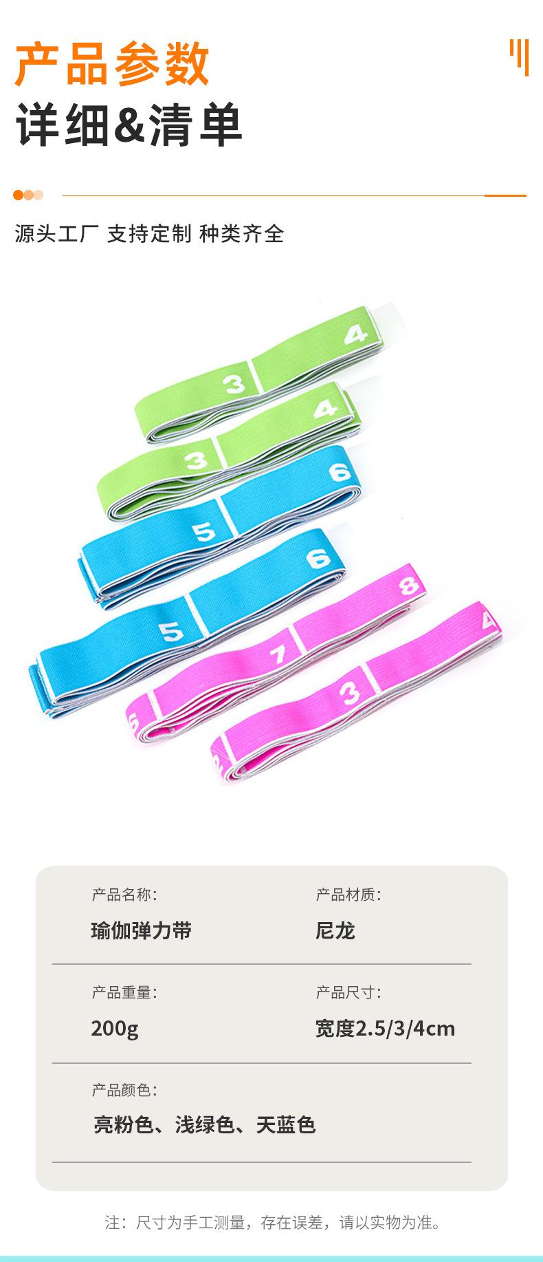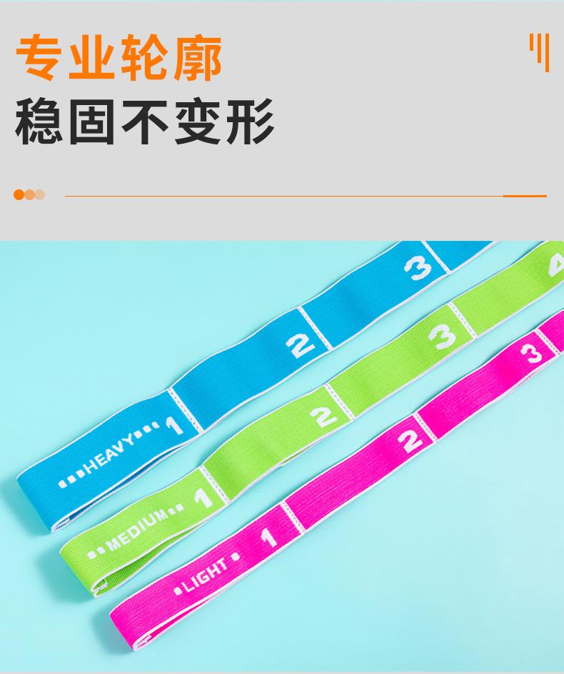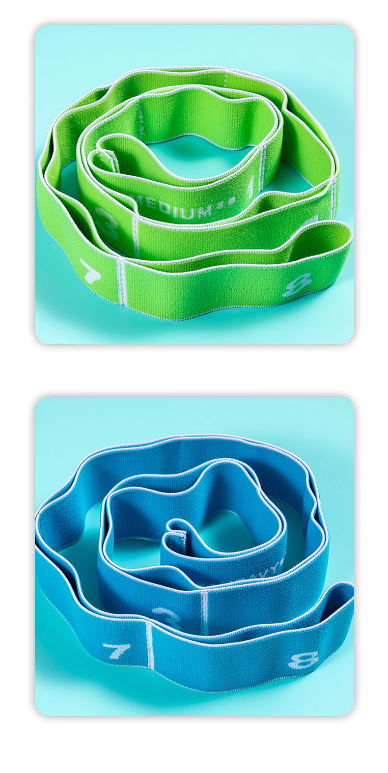 Cinturón elástico de yoga al por mayor, cinturón de resistencia de nailon para fitness, cinturón elástico de jacquard, suministros de yoga, cinturón de tensión segmentado para adultos.