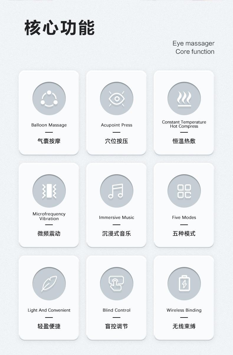 Compra Masajeador de Ojos con Bolsa de Aire Transfronterizo Recargable Eléctrico Compresa Caliente Protector de Ojos Música Bluetooth Aparato para Dormir Masajeador Plegable al por mayor en Joom.pro
