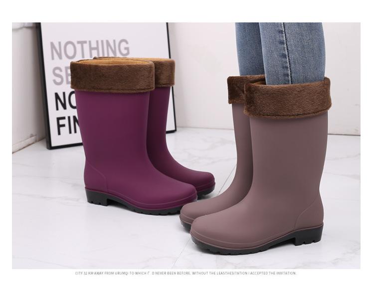 Botas de lluvia para mujer adulta, con forro polar, cálidas, mate, esmeriladas, botas de agua, liquidación, zapatos de agua de goma, venta al por mayor