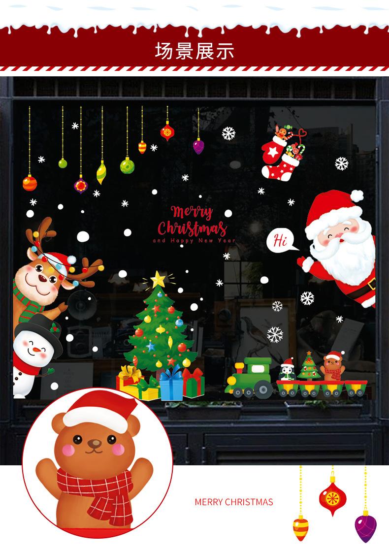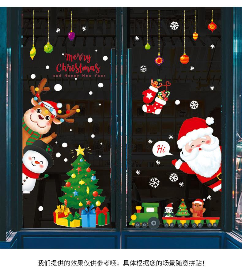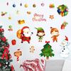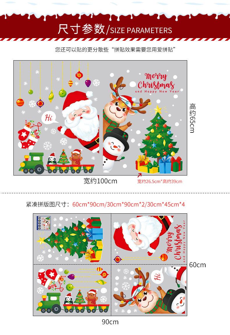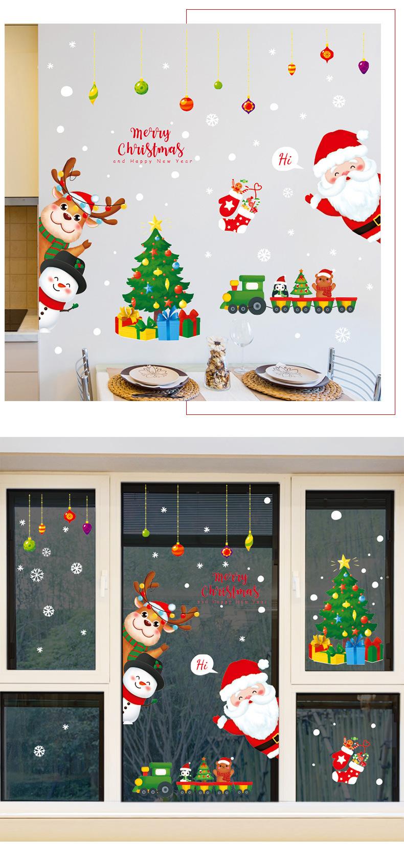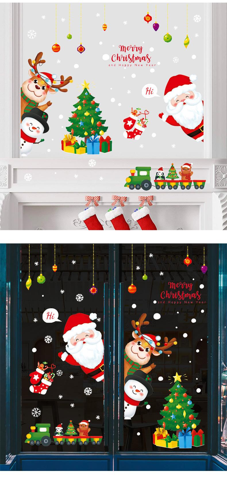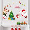 HT94031 Adhesivo decorativo para pared con diseño navideño de Papá Noel, ciervo, muñeco de nieve y ventana de cristal