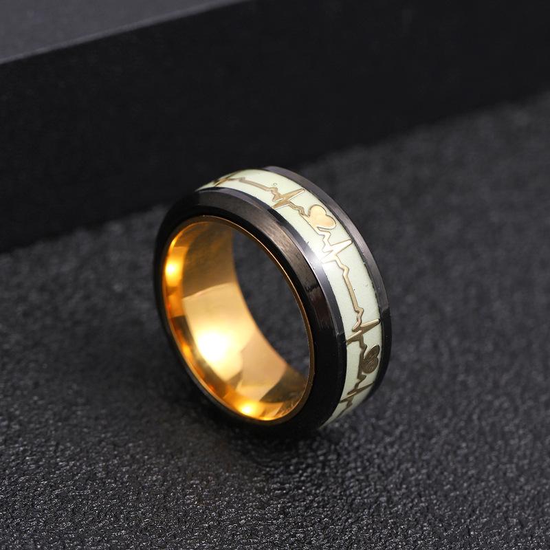 Joyería nueva de acero inoxidable giratoria transfronteriza anillo luminoso de ECG luminoso para pareja anillo de acero de titanio