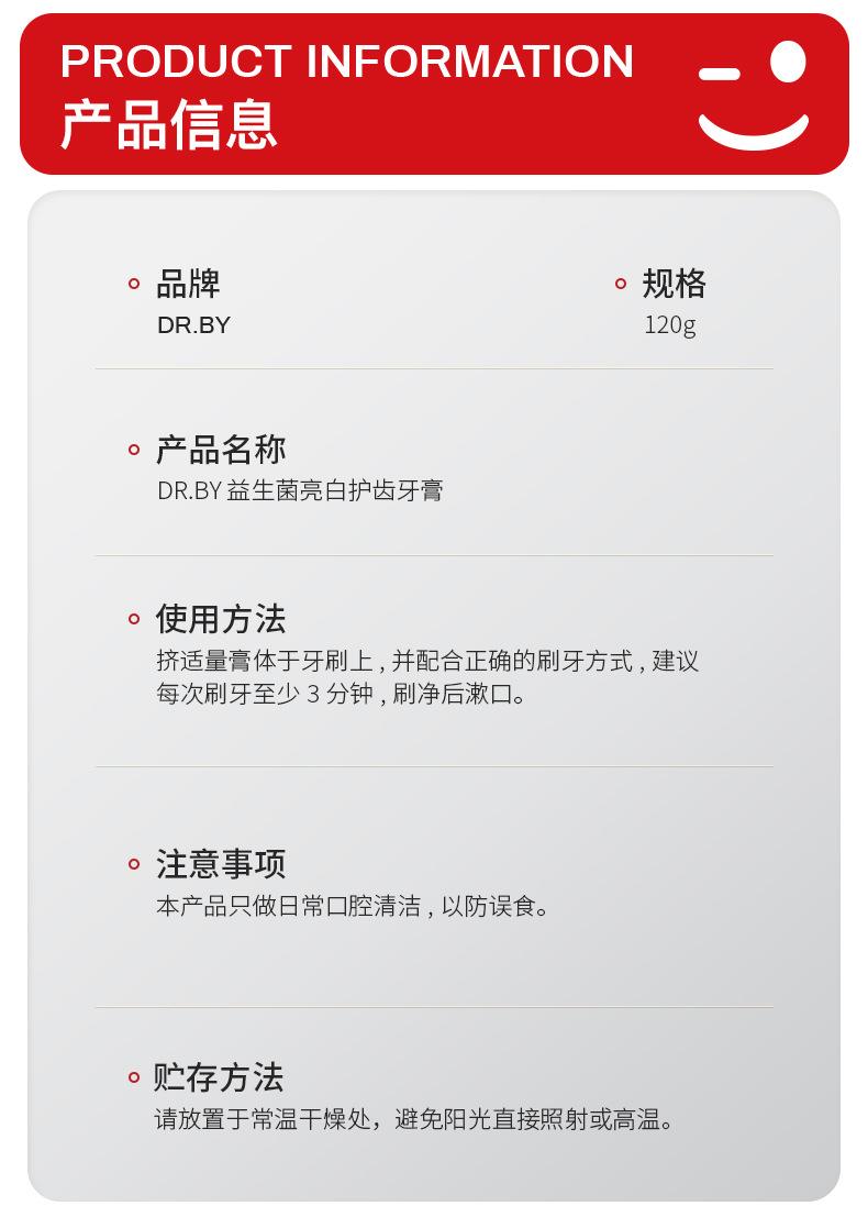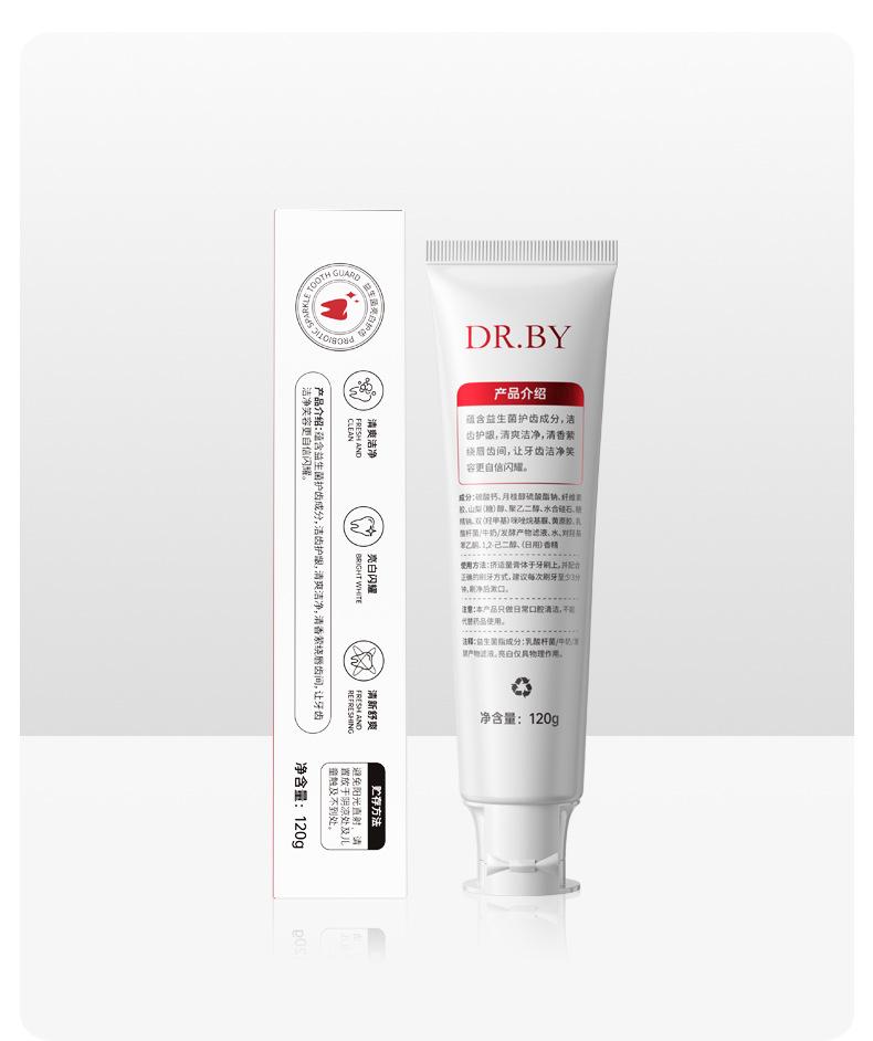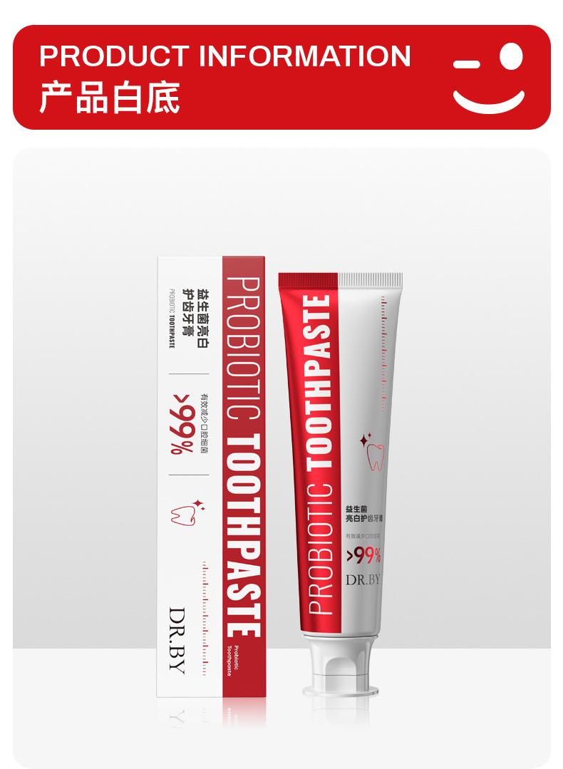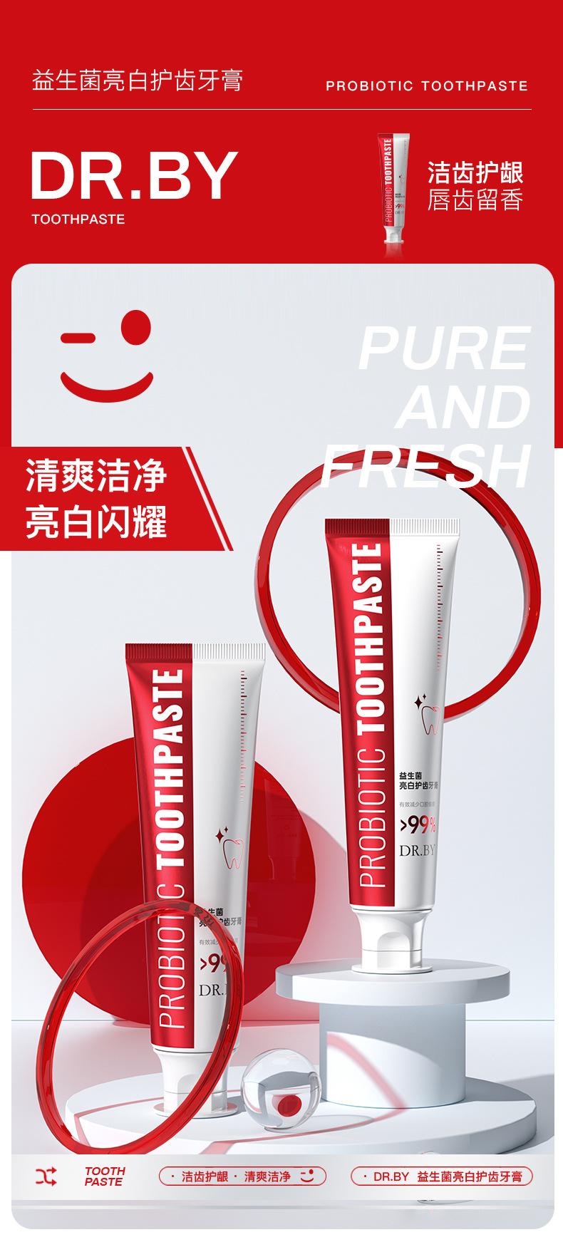 Pasta de dientes probiótica DR.BY para el cuidado dental 120g aliento fresco limpieza dental pasta de dientes fábrica venta al por mayor entrega