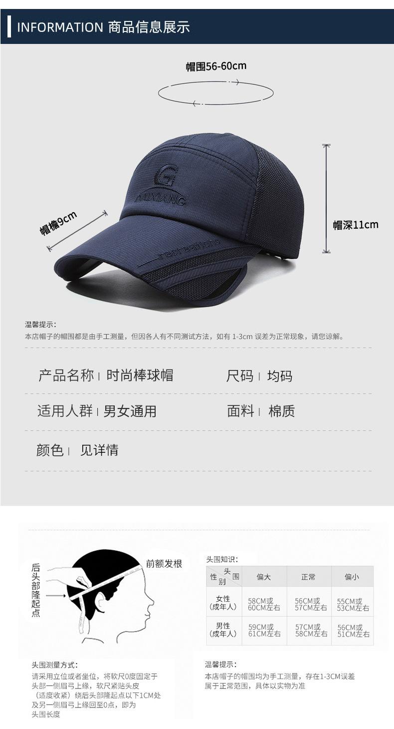 Sombrero de verano para hombre con ala retráctil, sombrero para el sol para mujer, sombrero fresco para pesca con protección solar, sombrero para el sol coreano, gorra de béisbol para exteriores