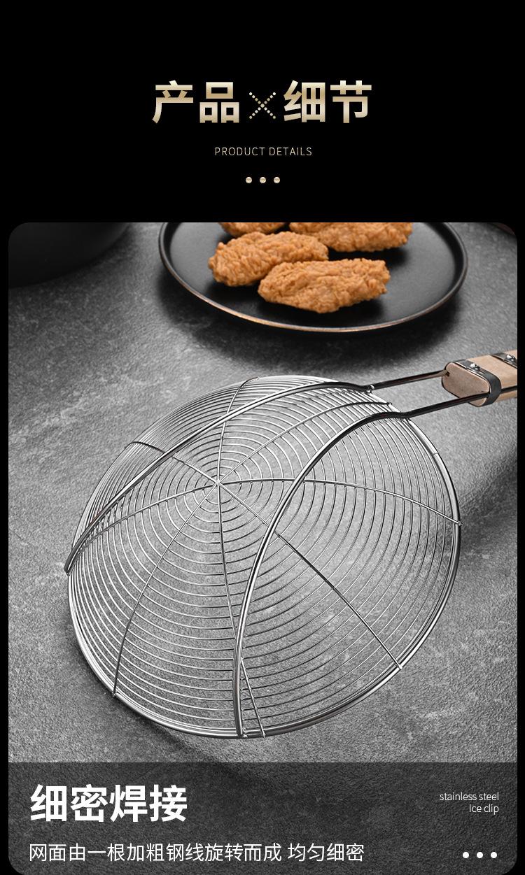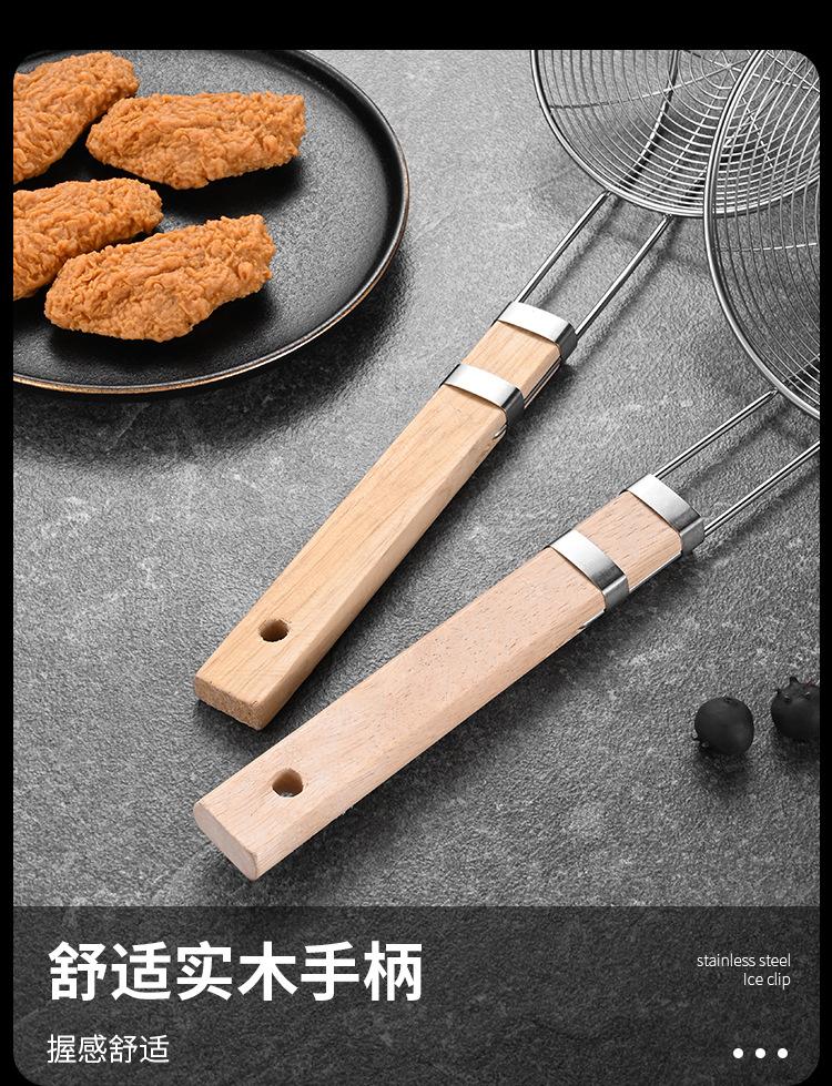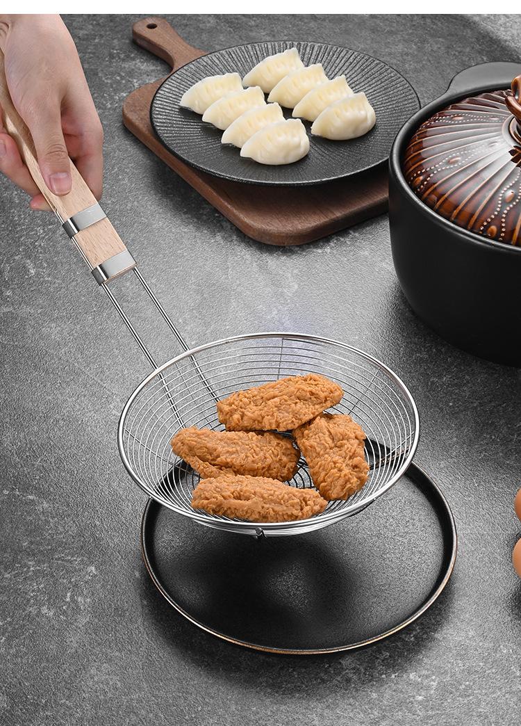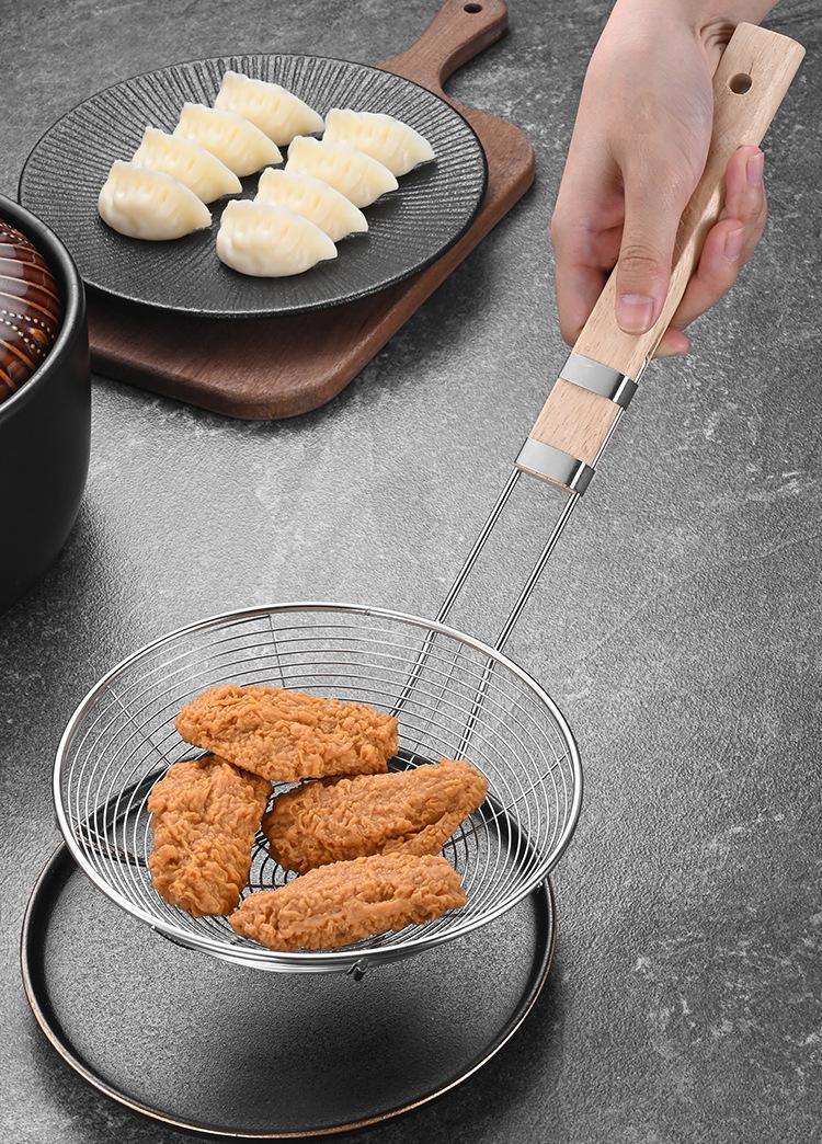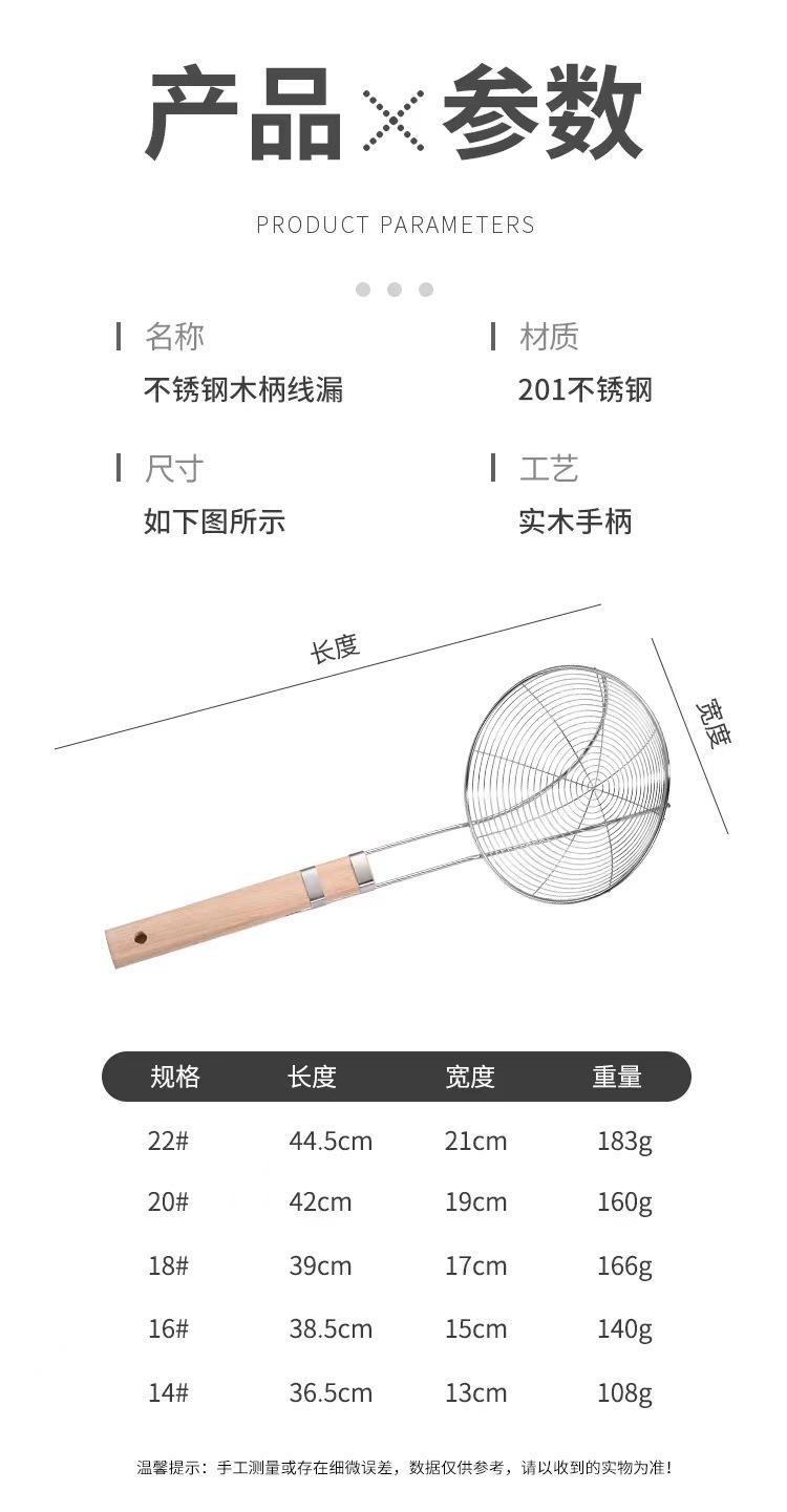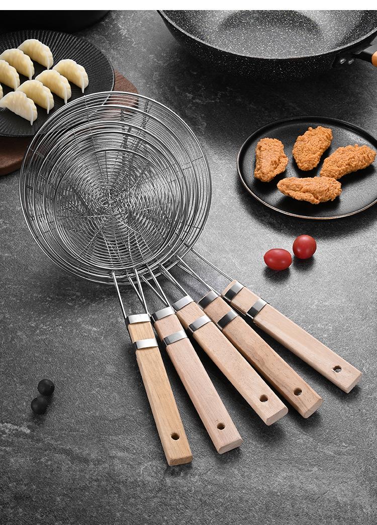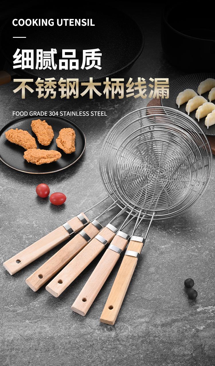 Colador grande de acero inoxidable con mango largo no magnético, cuchara para ollas calientes, colador con mango de madera reforzado de doble línea, antifugas para hoteles