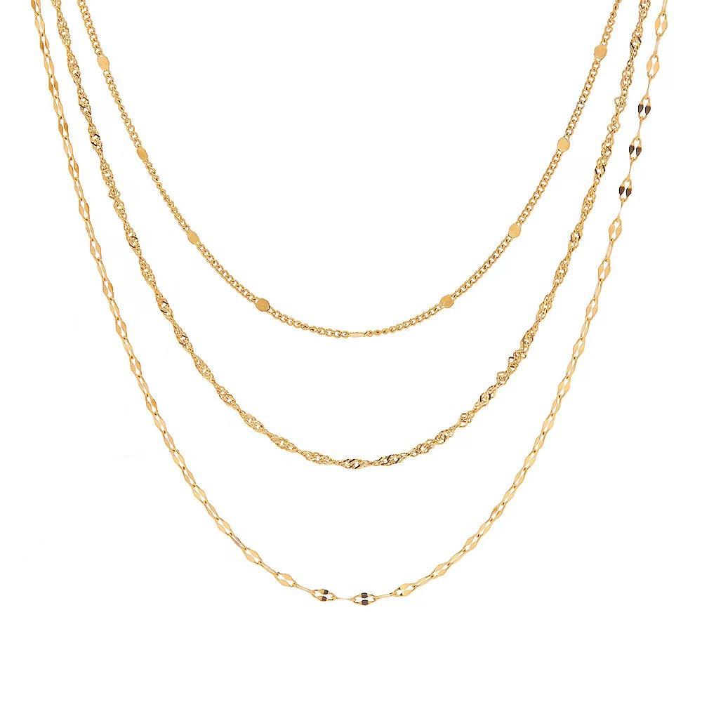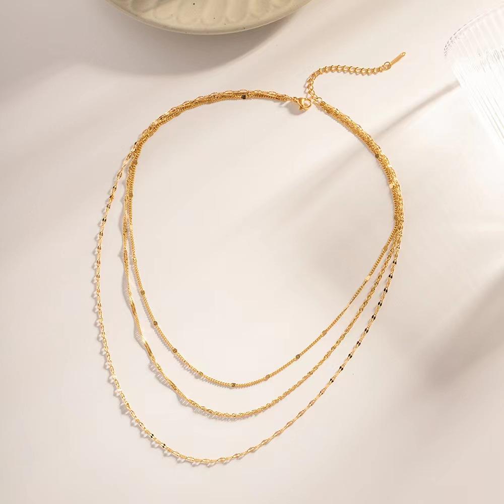 Venta al por mayor transfronteriza de collares de tres capas chapados en oro de 18 quilates de estilo europeo y americano a la moda para mujer, joyería de acero de titanio de alta calidad