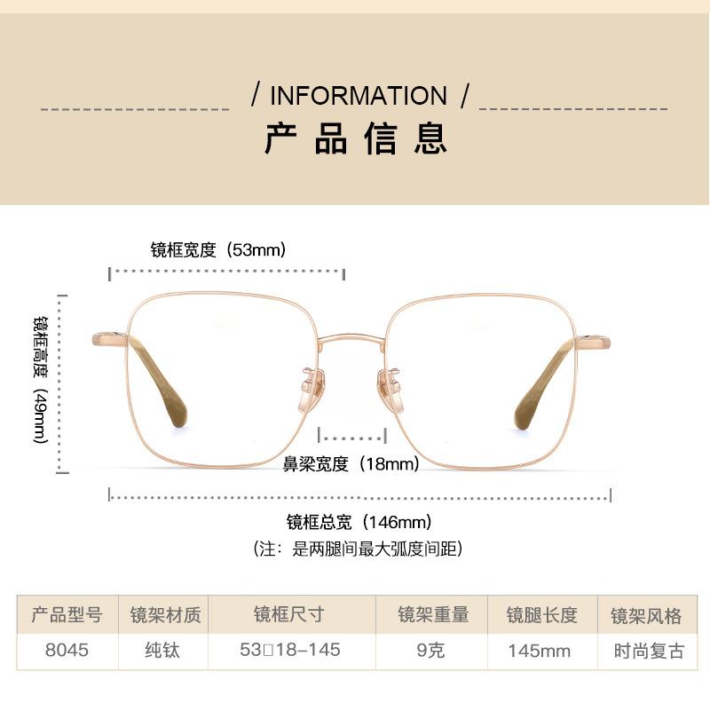 Montura de gafas cuadrada de alta calidad de titanio puro retro de montura grande para blanquear sin pellizcar la cara se puede equipar con Danyang al por mayor