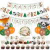 Producto: Nuevo colgante temático de cumpleaños de bebé de la tribu de animales del bosque, set de decoración para fiesta de revelación de género, banderín, tarjeta para jalar |