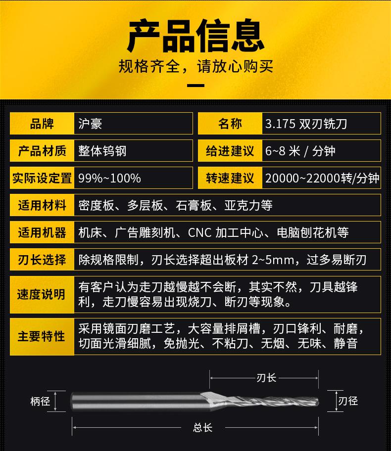 Huhao /4/6mm cortador de espiral de doble hoja, cuchillo de corte acrílico, herramienta de tallado CNC, venta al por mayor