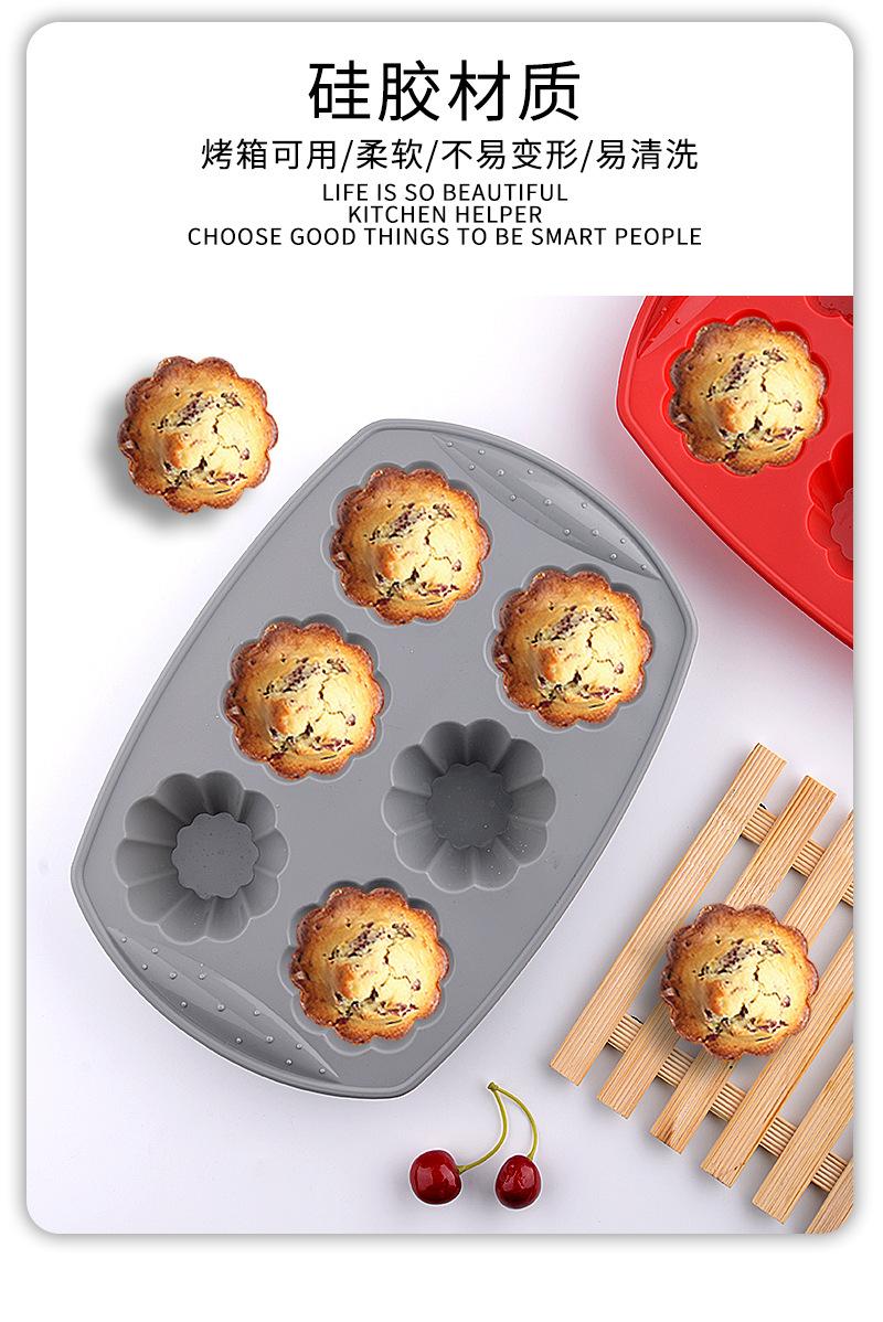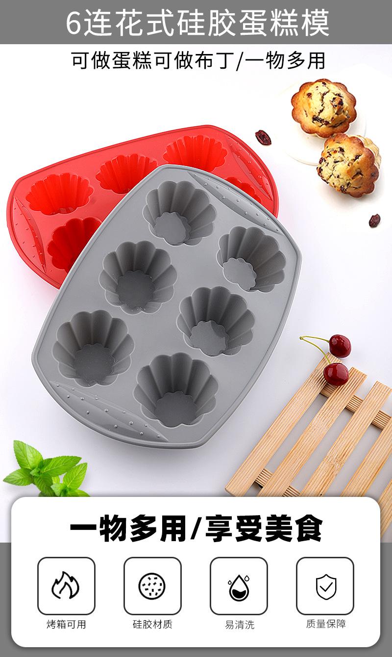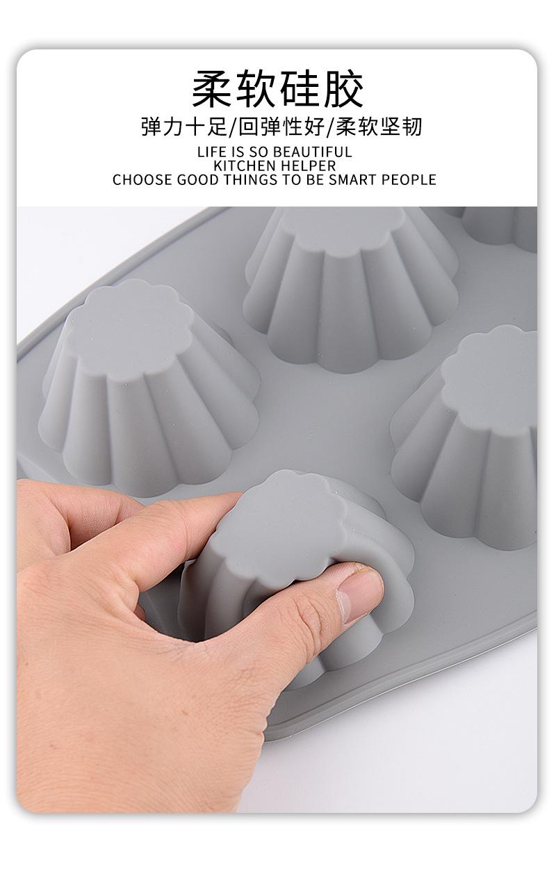 Molde de silicona para pastel redondo de 6 eslabones, disponible en stock, para bricolaje, utensilios de cocina para hornear, molde de pudín de silicona con forma de taza Mafen.