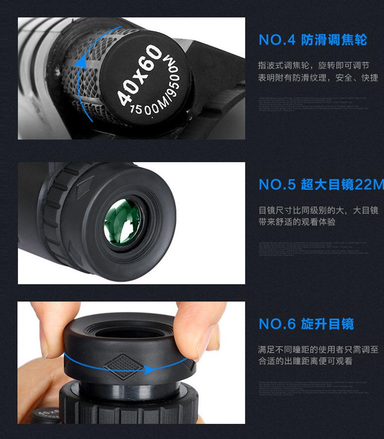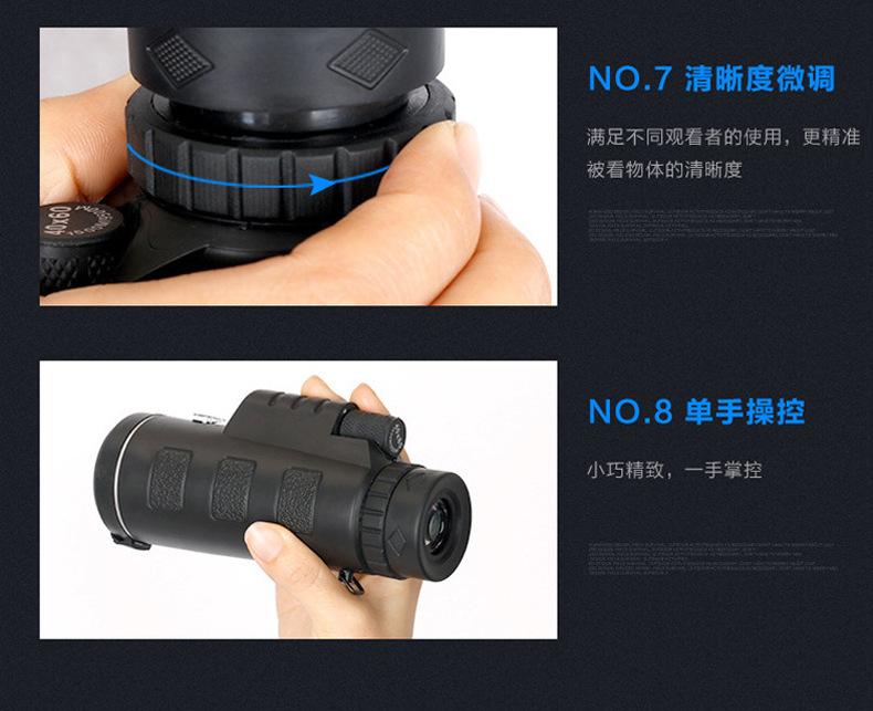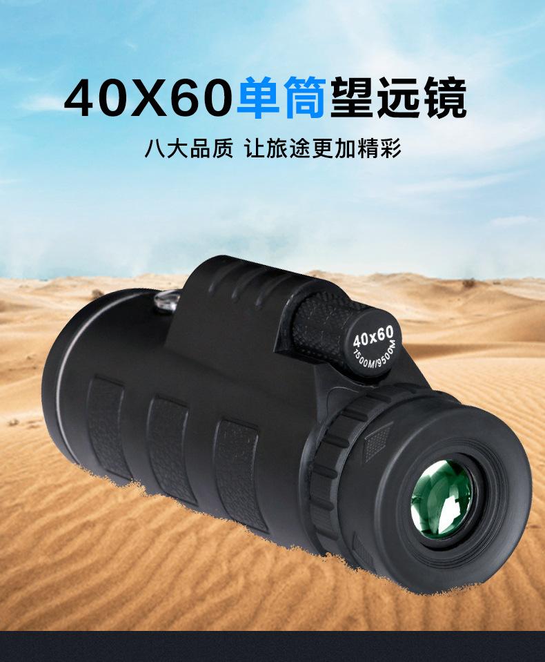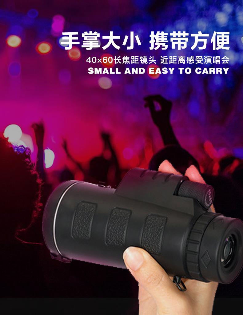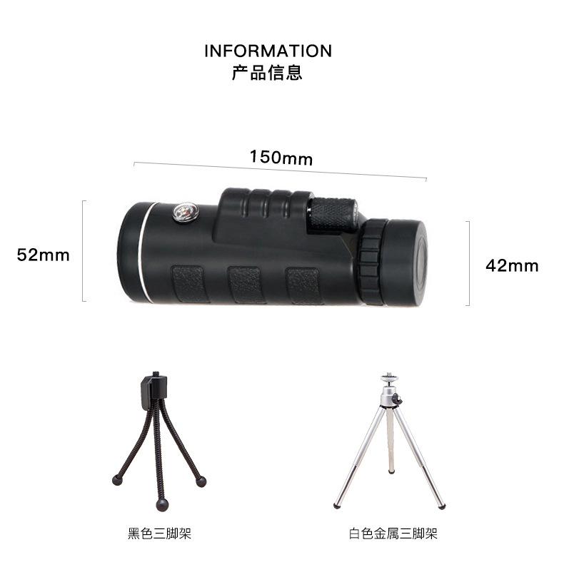 Telescopio monocular óptico de alta definición 40X60 para exteriores con foto de teléfono móvil y brújula.