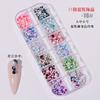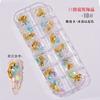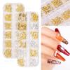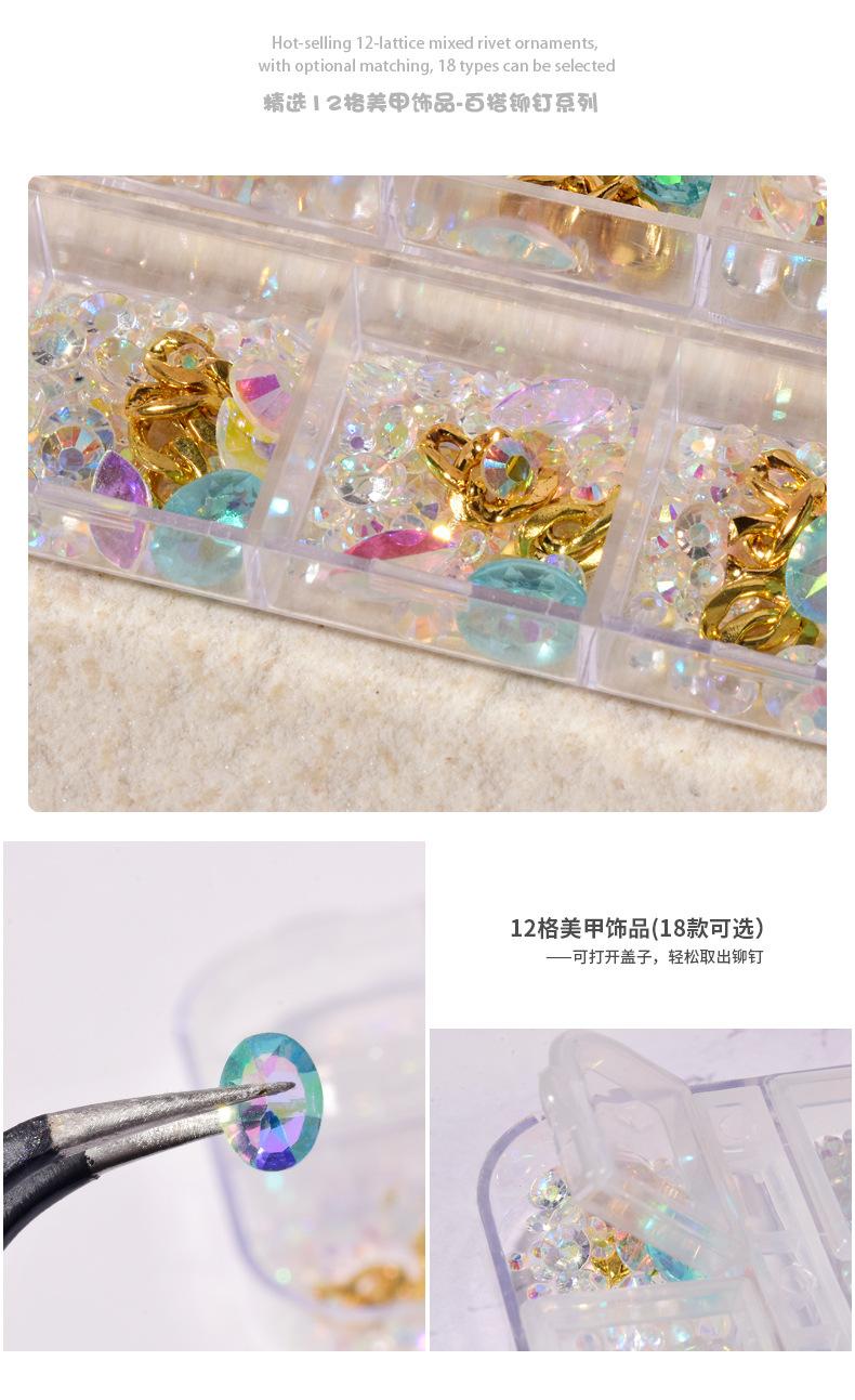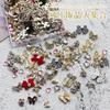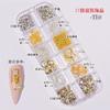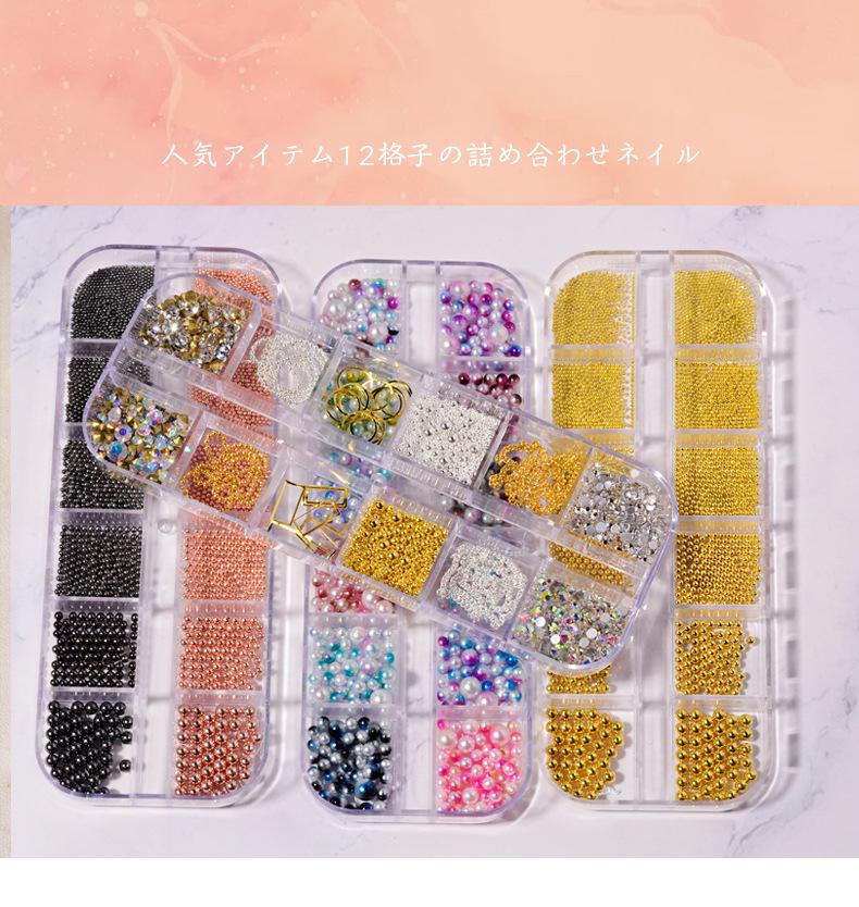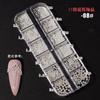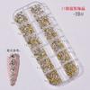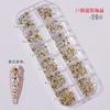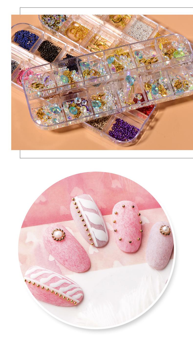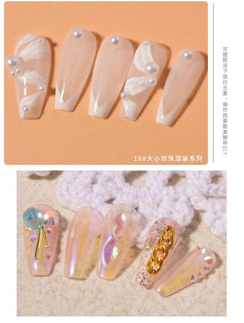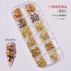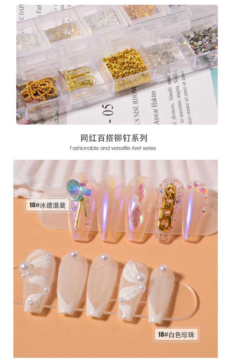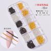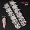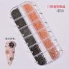 Conjunto de caja con cadena de metal para decoración de uñas, joyería japonesa con diamantes de imitación y remaches mixtos de perlas, pequeños accesorios
