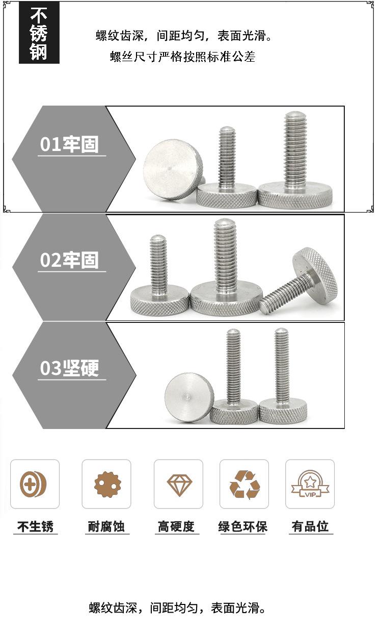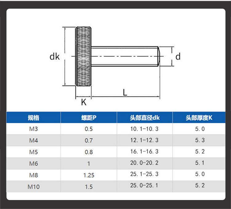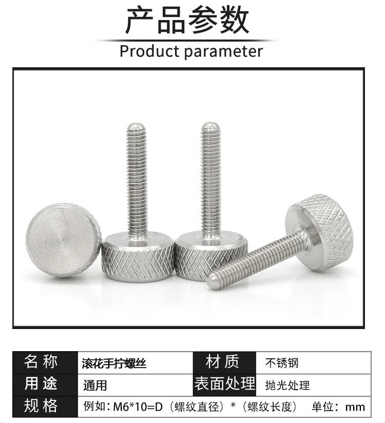 Tornillo de mano de acero inoxidable 304 M3M4M5M6M10 cabeza plana cabeza grande moleteada mango redondo tornillo de perno