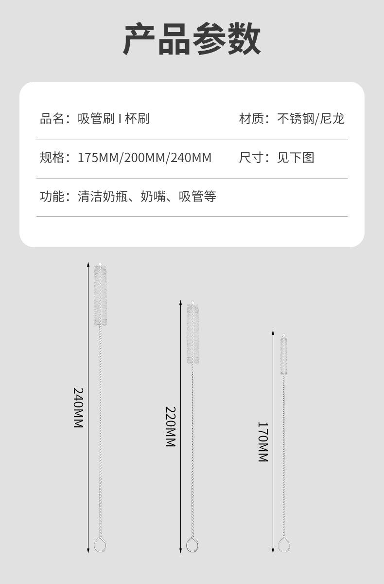 Nombre: Cepillo para Popote de Acero InoxidableMaterial:Acero inoxidable + nailon