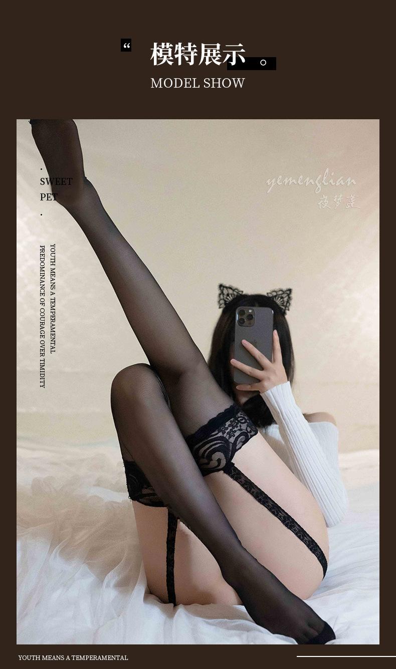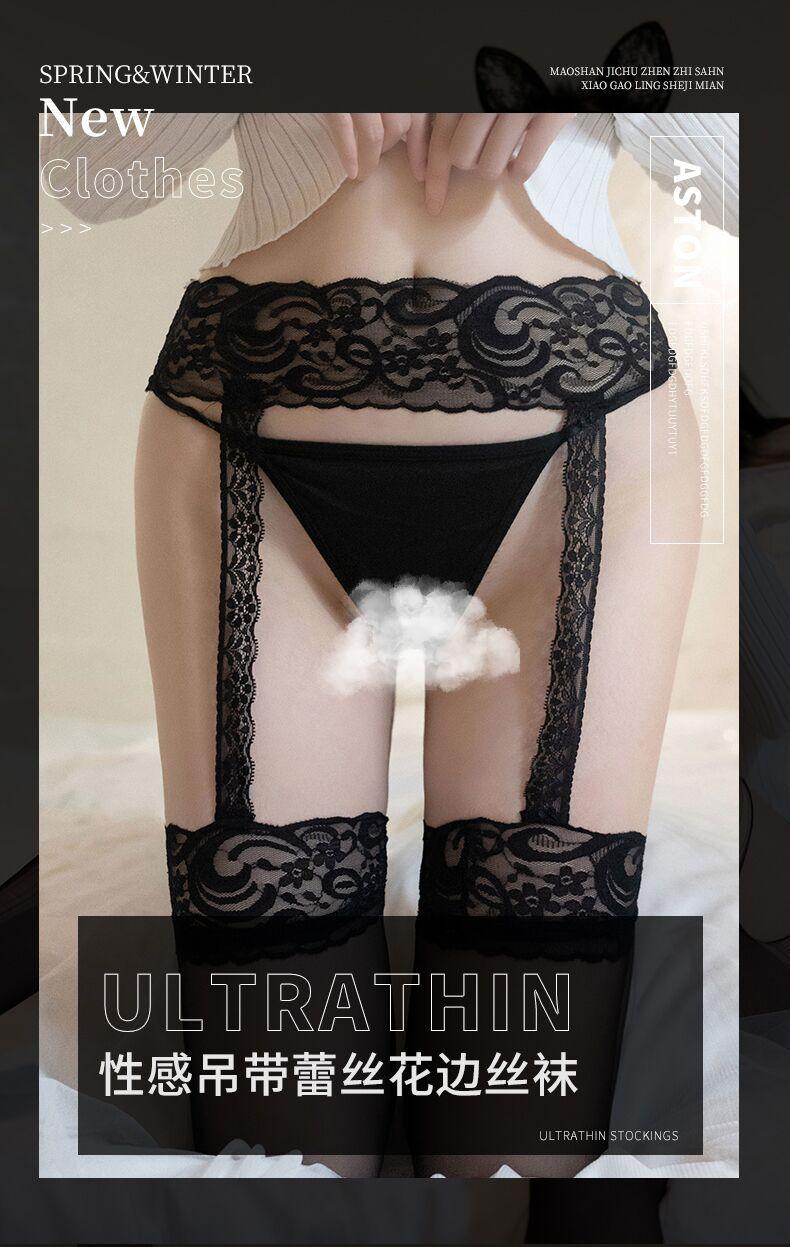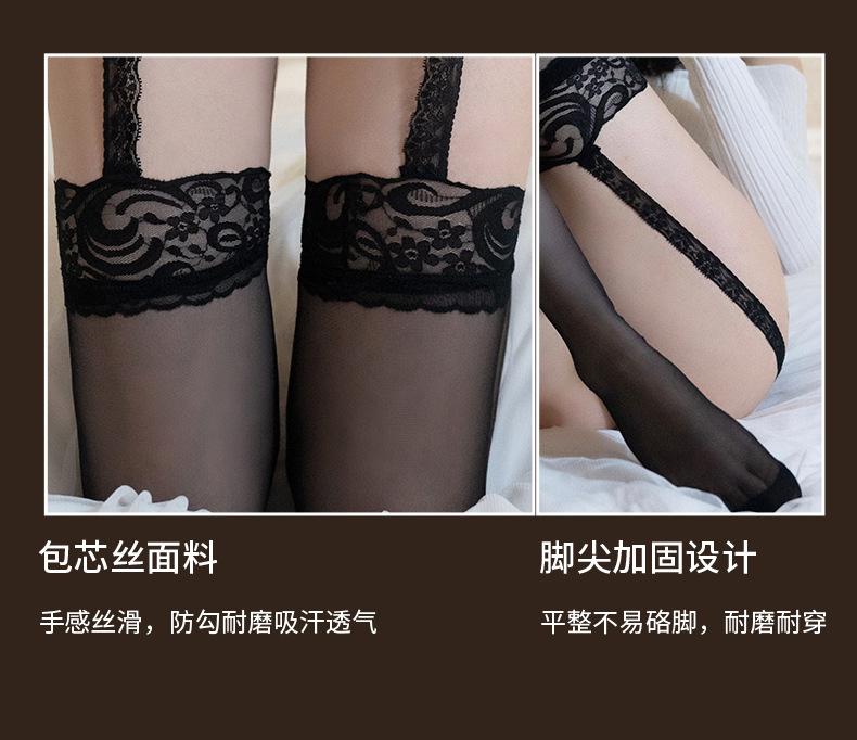 Medias de encaje con tirantes de una pieza, ropa interior sexy, ultrafinas, transparentes, tentación, cadera abierta, generación femenina libre, cabello