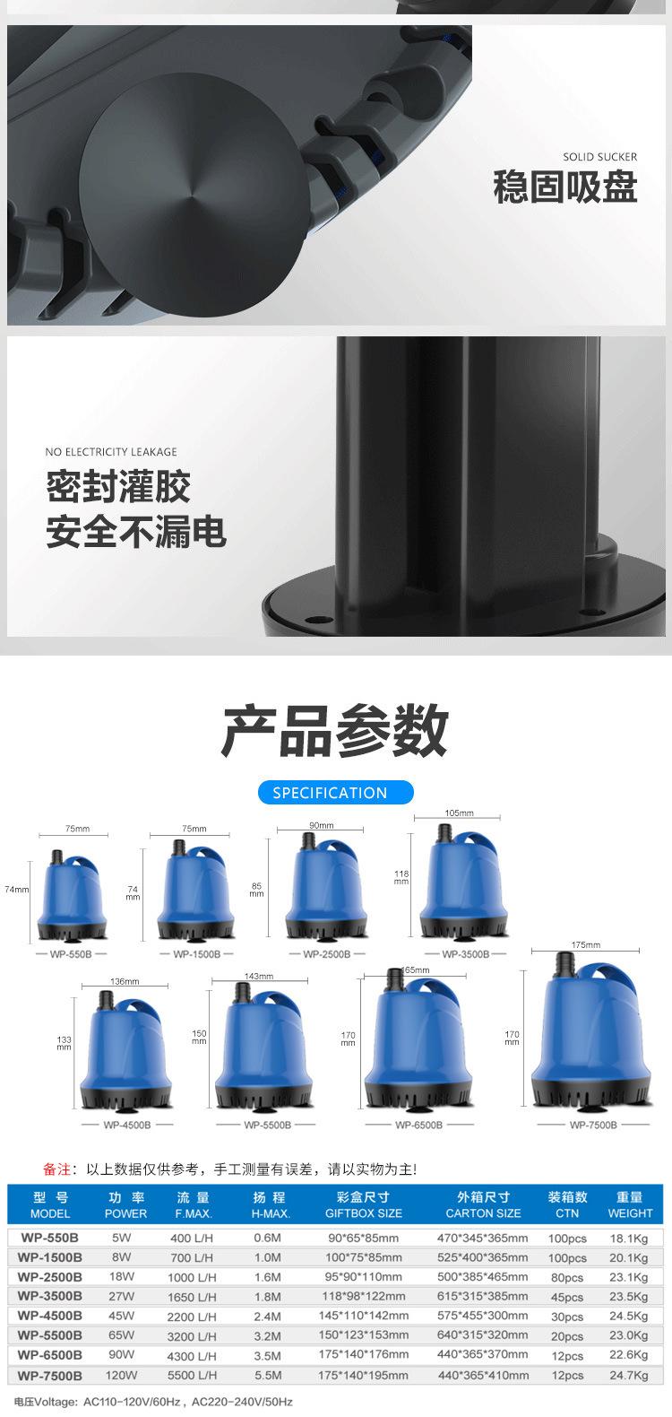 Wp-550b blue-anti-dry burning silent upgraded model 5w, Wp-1500b blue-anti-dry burning silent upgraded model 8...