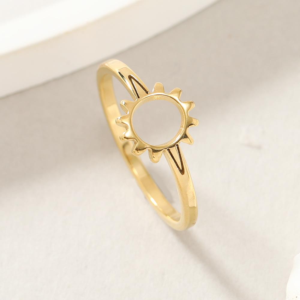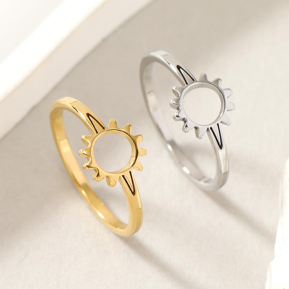 Anillo de acero de titanio de venta caliente transfronteriza europea y americana, anillo de pareja de girasoles simples, anillo de acero inoxidable, joyería de fábrica al por mayor