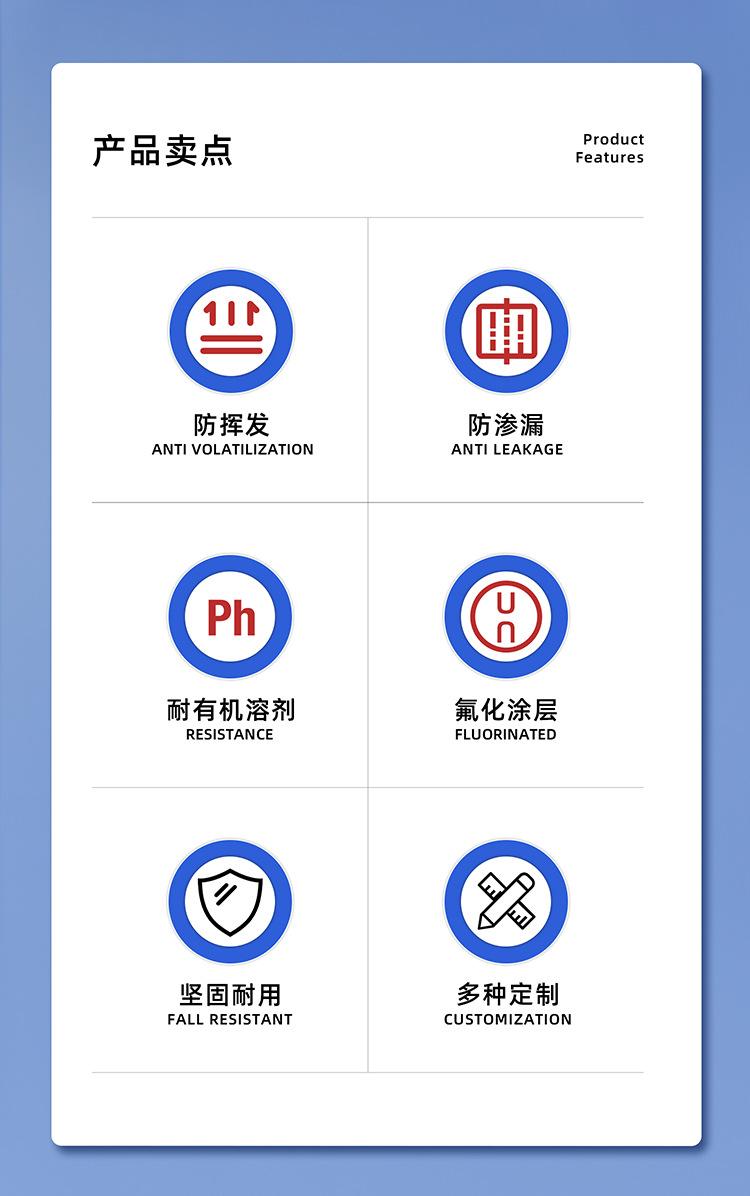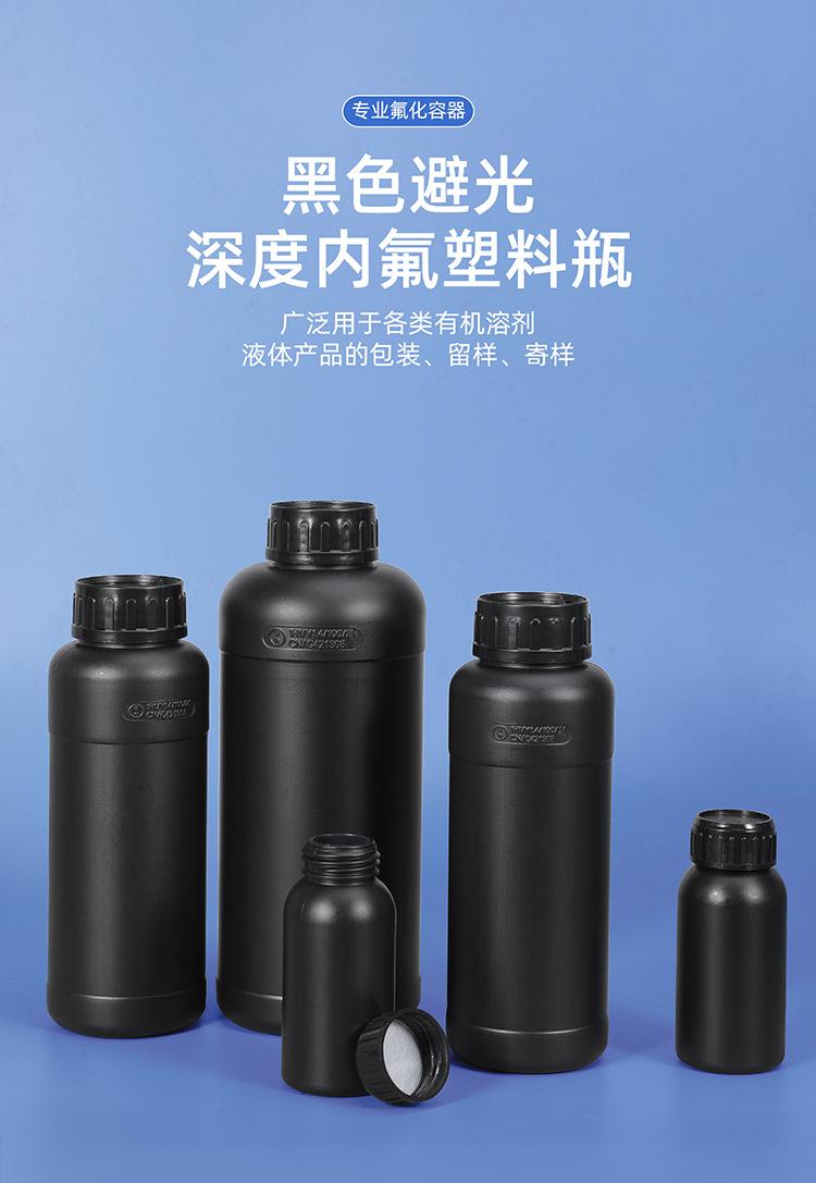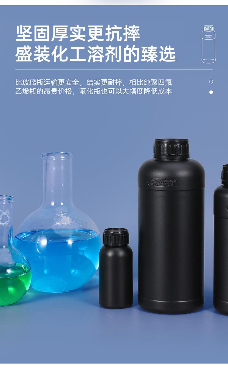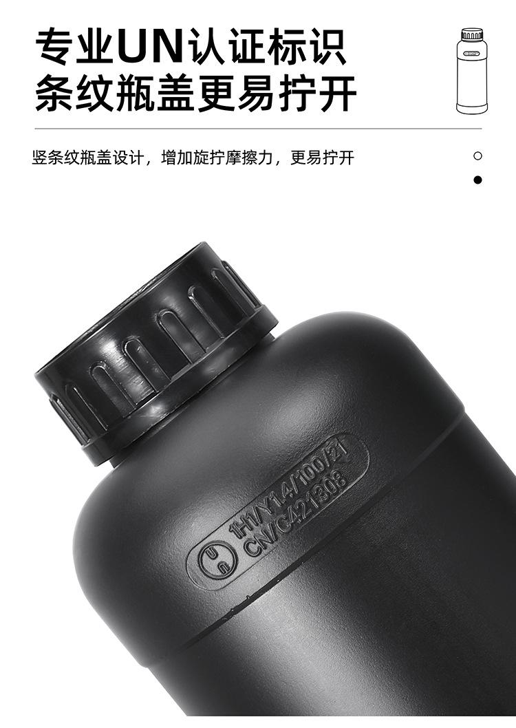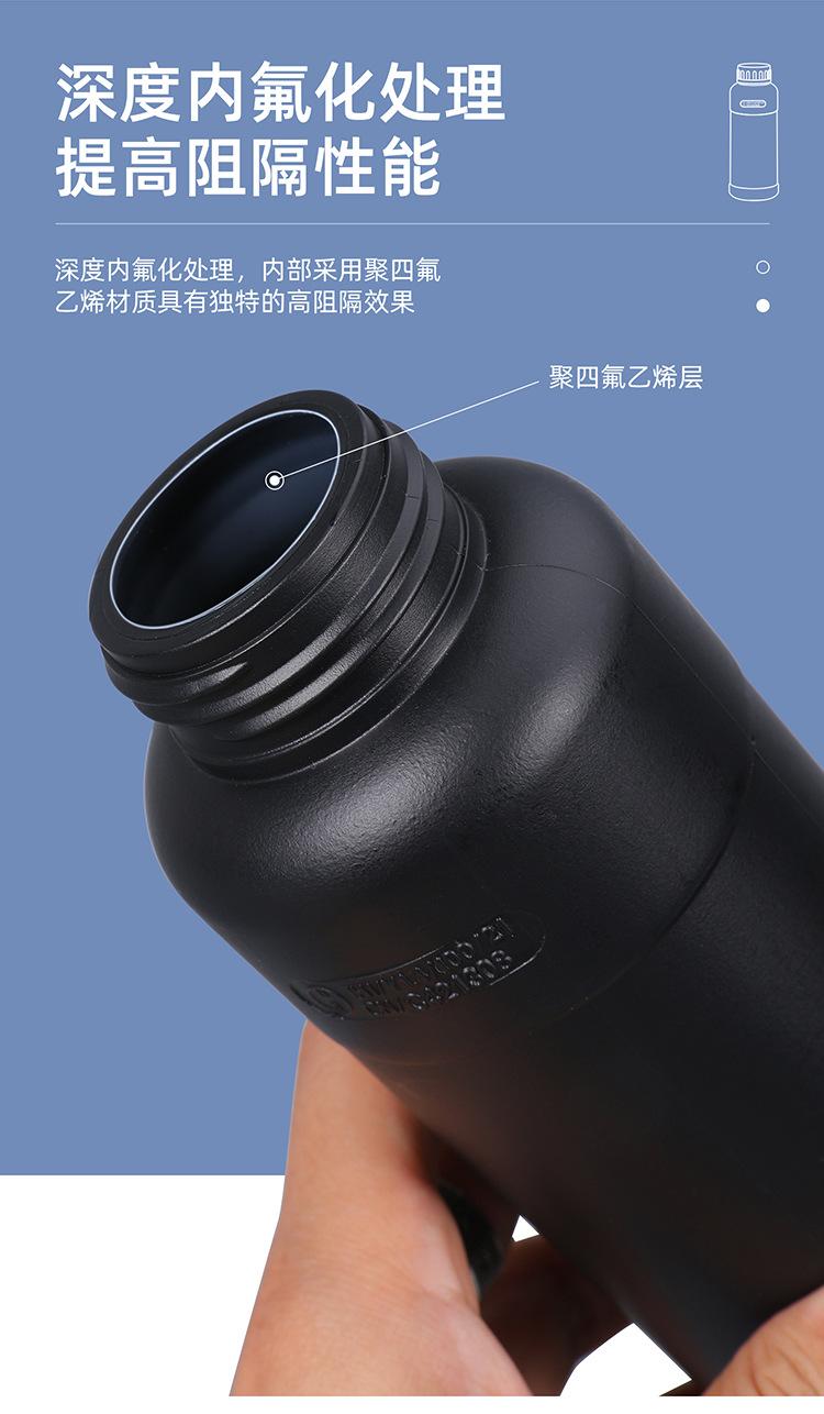 Botella de plástico Ritu personalizable, gruesa, sellada, fluorada, redonda, con disolvente químico, negra, oscura, resistente a la corrosión.