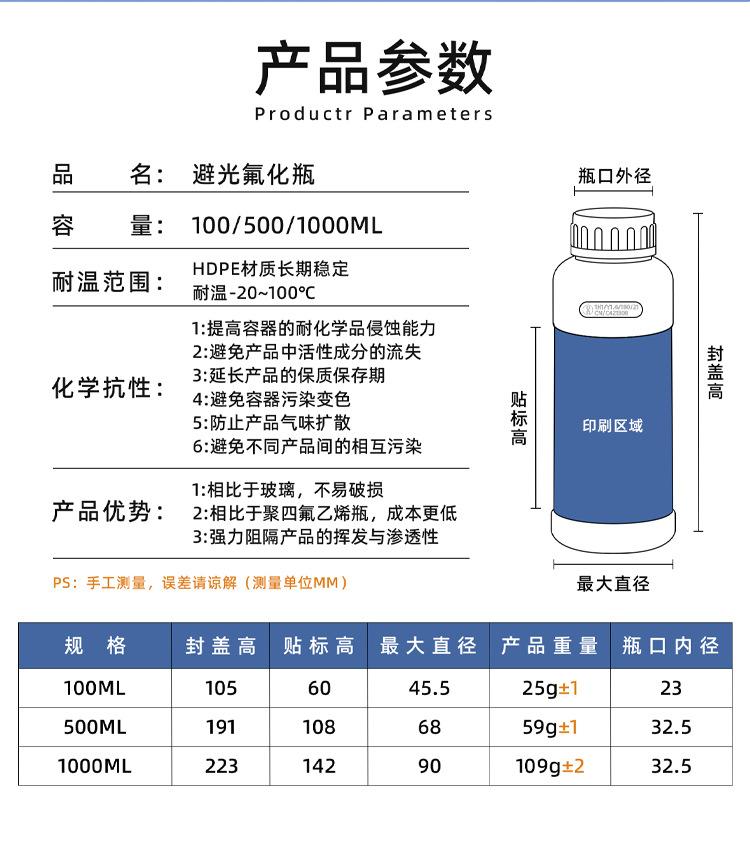 100ml-black protected from light, 500ml-black protected from light, 1L-black to avoid light
