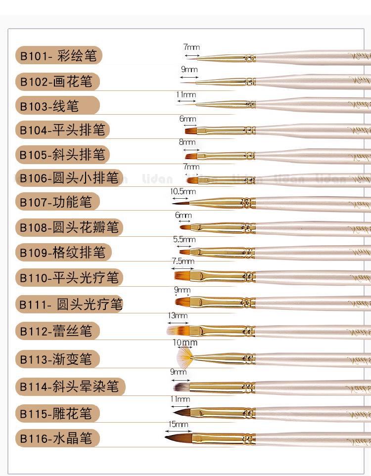 Nail art brush tools 16 complete set japanese pearlescent rod painting pen painting pen phototherapy pen autum...