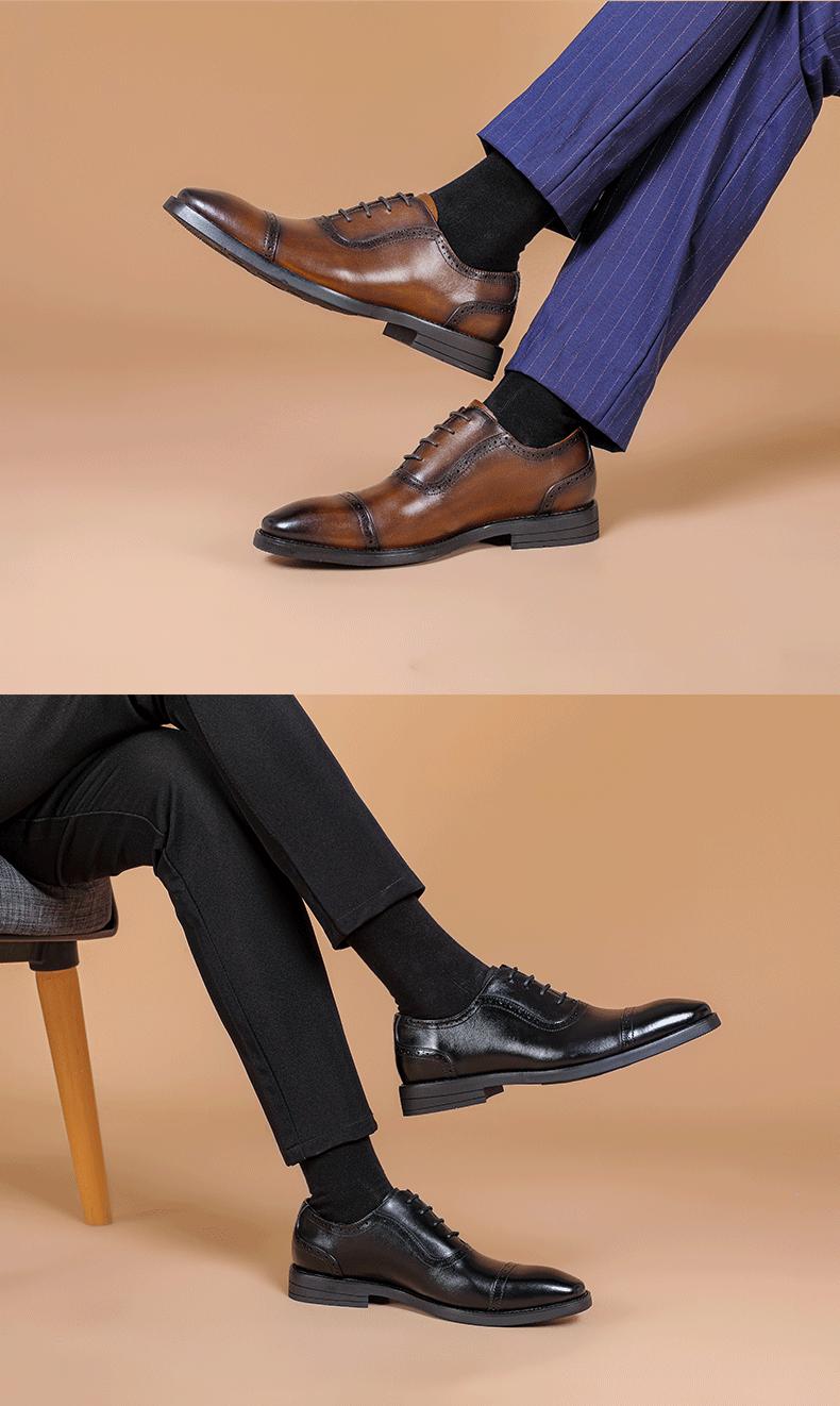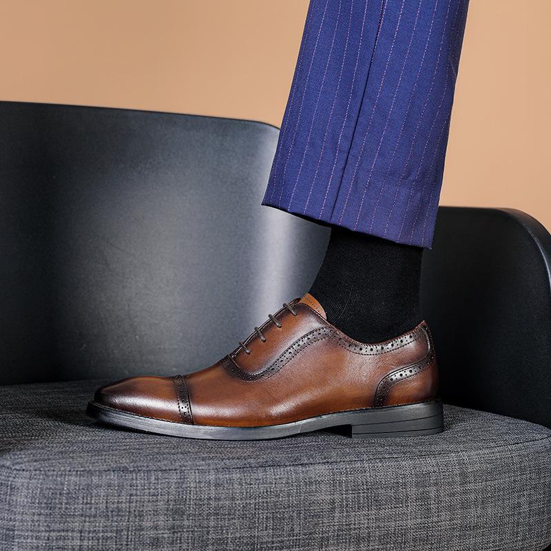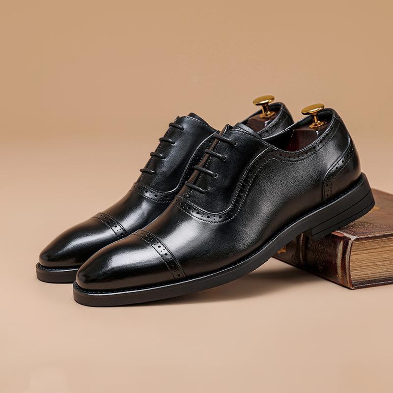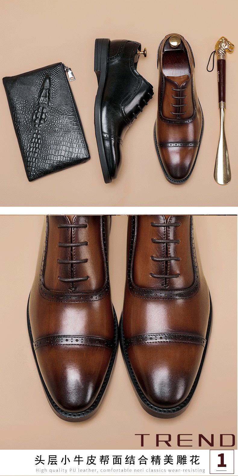 Puntera de Cuero Capa Superior Cuero Vacuno Formal Negocios Zapatos de Cuero para Hombre Cuero Genuino Brogue de Tres Articulaciones Tallado Estilo Británico Ligero