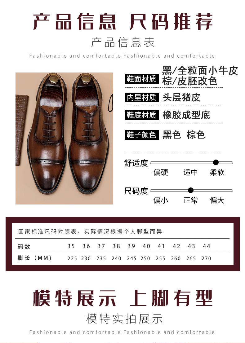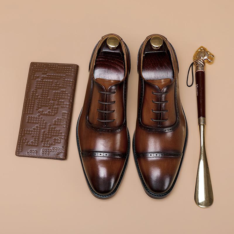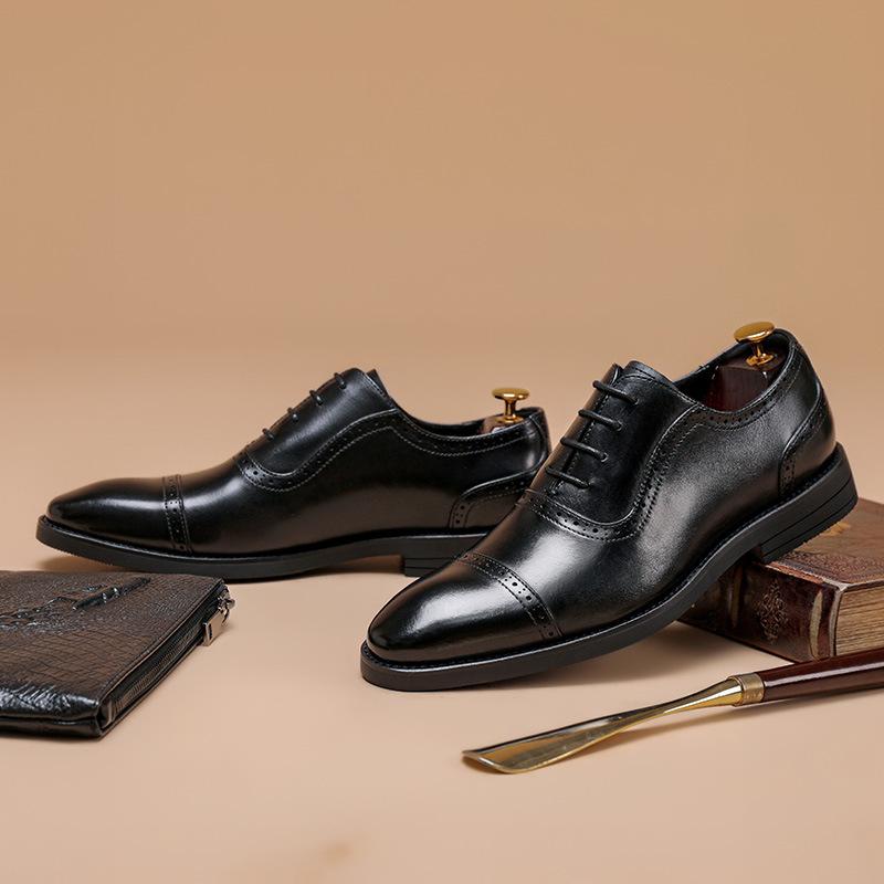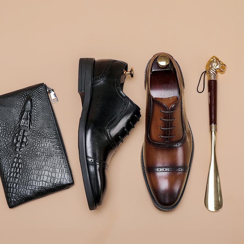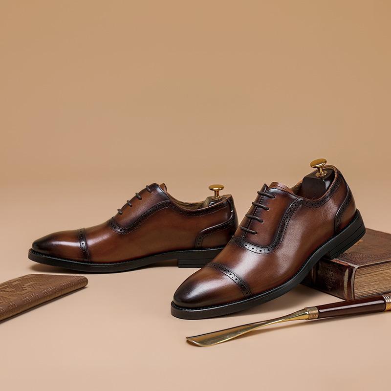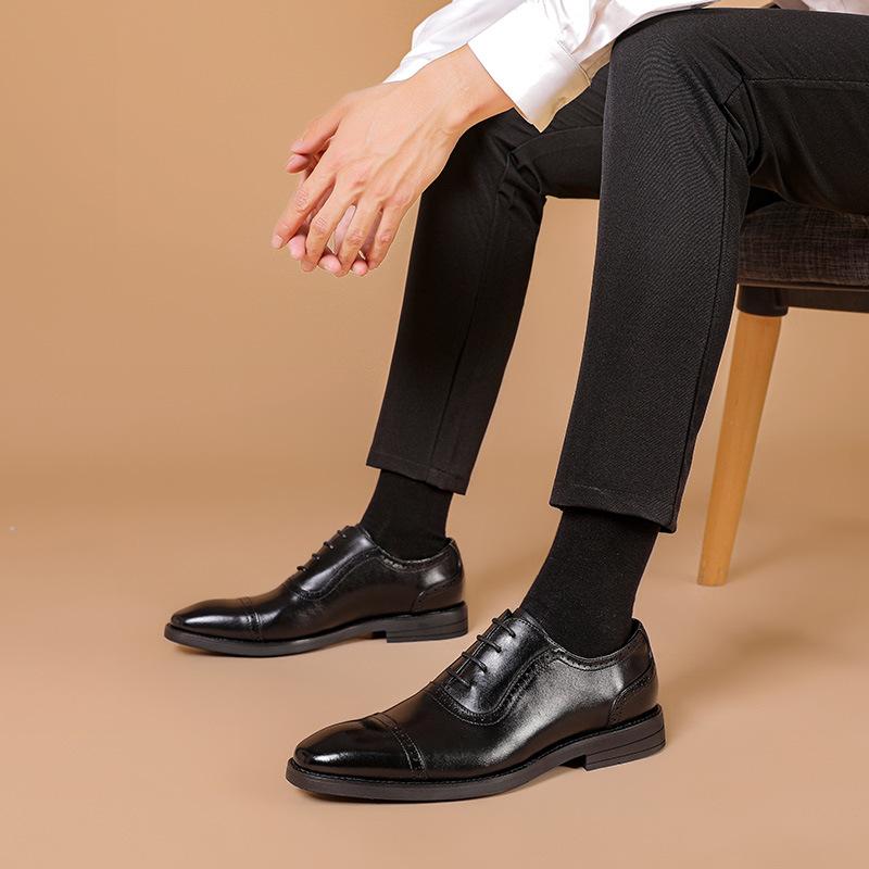 Puntera de Cuero Capa Superior Cuero Vacuno Formal Negocios Zapatos de Cuero para Hombre Cuero Genuino Brogue de Tres Articulaciones Tallado Estilo Británico Ligero