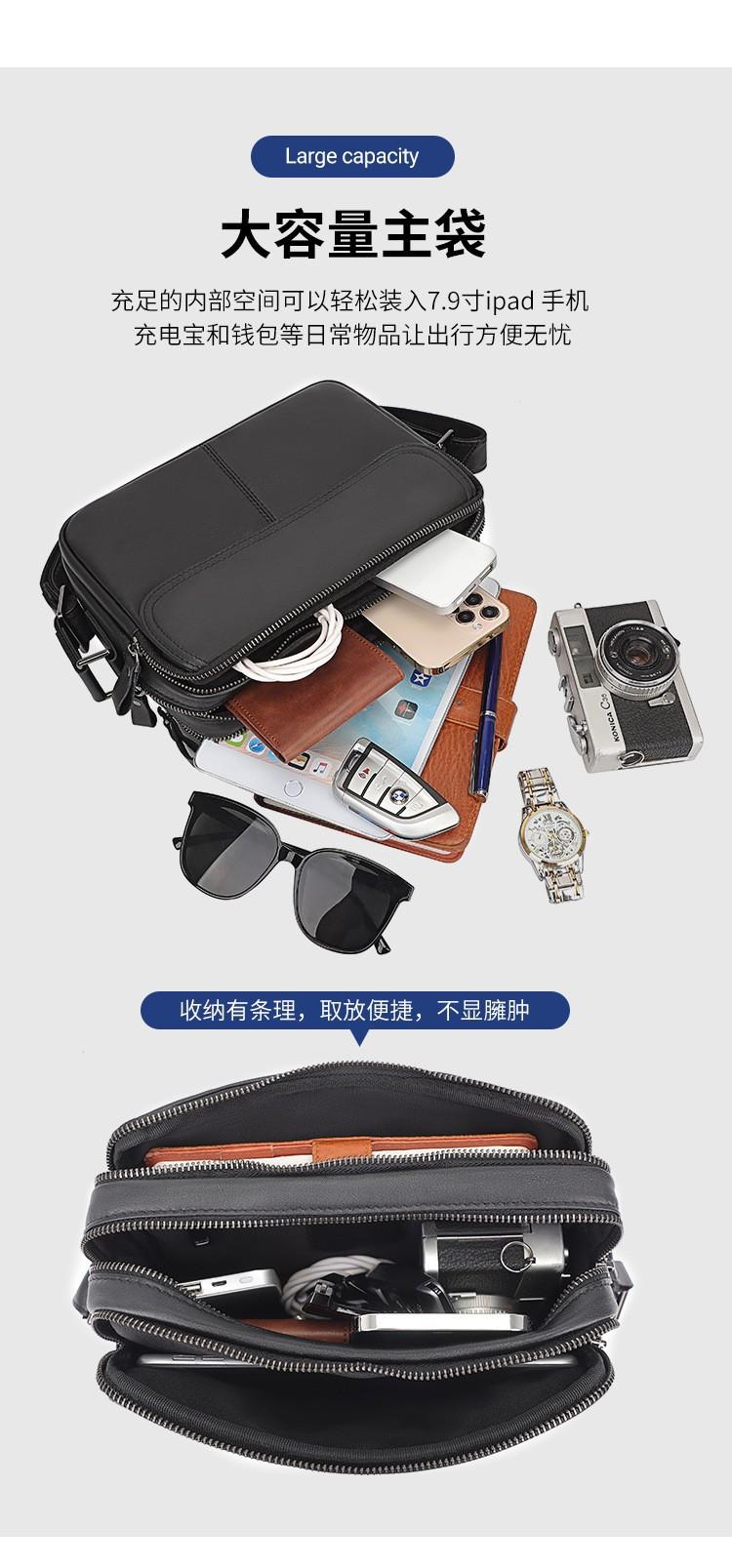 Tamaño: 23,5 cm de largo x 9 cm de grosor x 17 cm de alto. La correa de hombro fija se puede ajustar a la longitud.