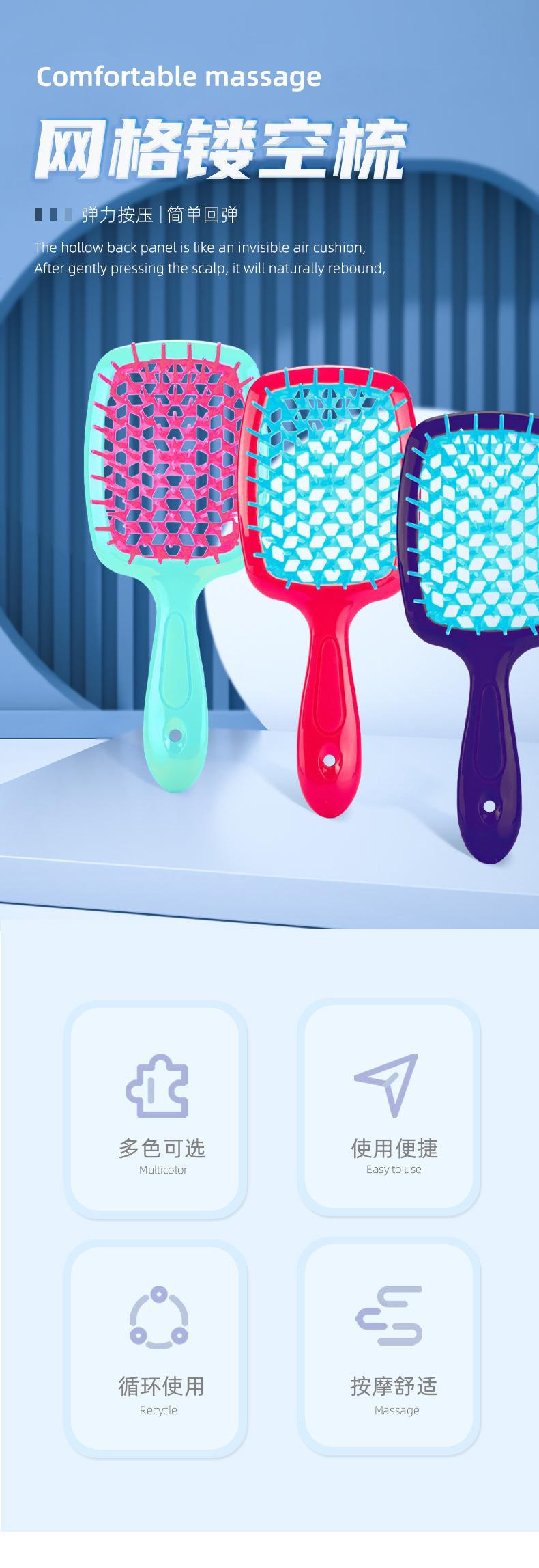 Peine de masaje para rizar y alisar el cabello en casa, de fábrica, peine para peinar, peine de masaje esponjoso con corte para peluquería femenina.