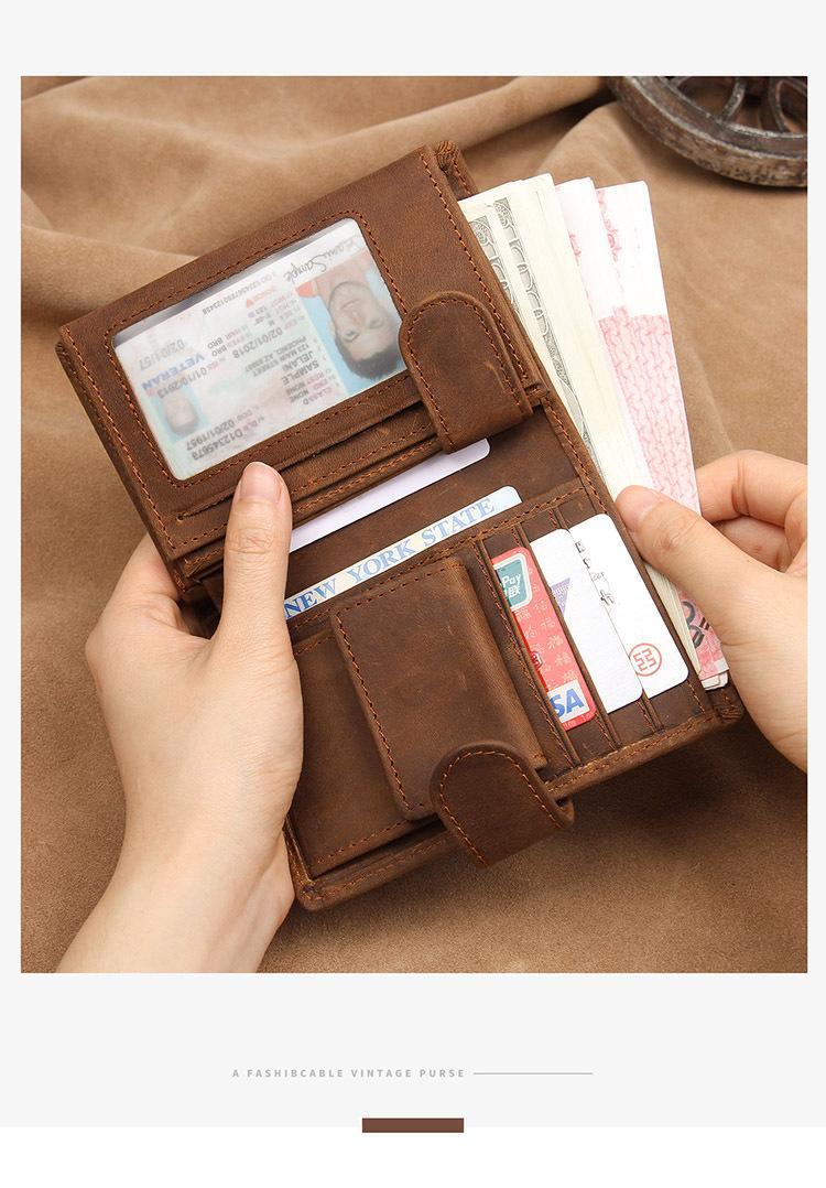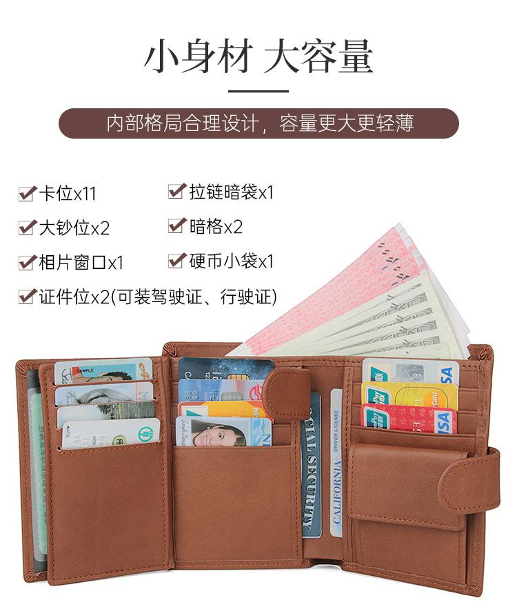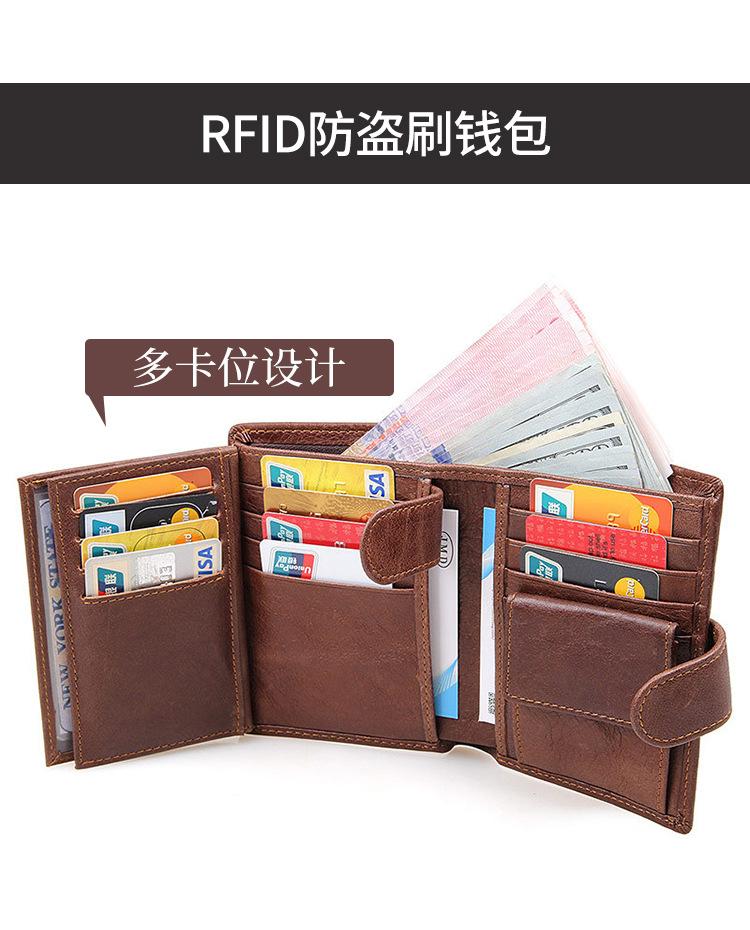 Monedero Vintage al por Mayor Billetera de Cuero Bolso para Tarjetas Triple para Hombre Billetera Corta de Cuero Vacuno para Hombre Protección Antirrobo RFID