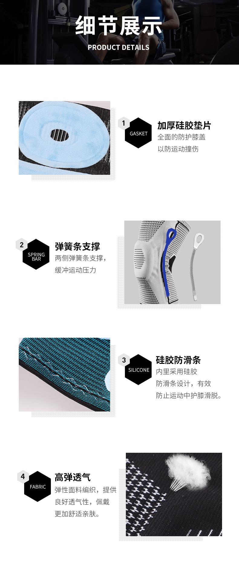 Nueva rodillera de silicona con resorte para deportes de fitness, protección contra la presión, absorción de impactos engrosada, Amazon transfronterizo