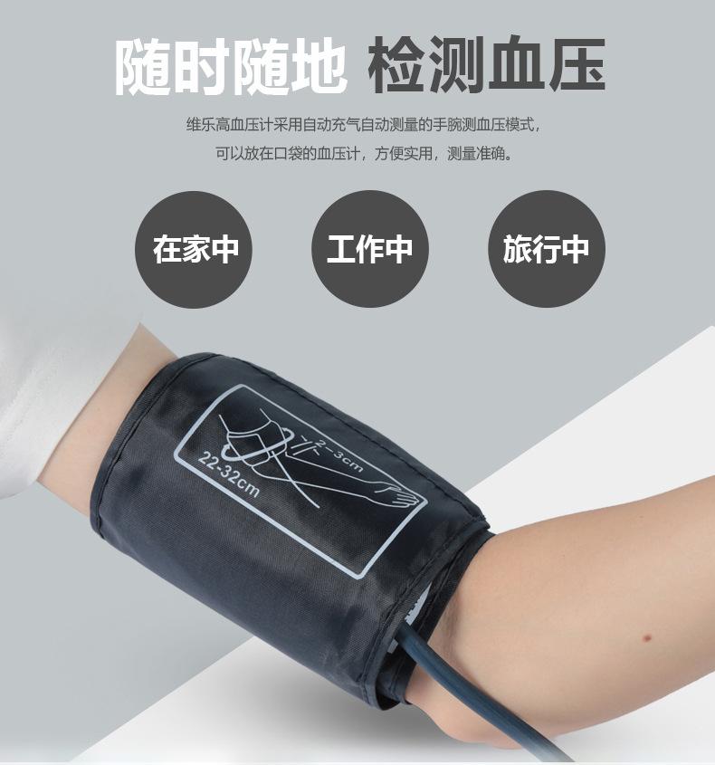 El método de medición del esfigmomanómetro de brazo es similar al del esfigmomanómetro de mercurio tradicional. Mide la arteria braquial. Dado que la banda se coloca en la parte superior del brazo, su estabilidad de medición es mejor que la del esfigmomanómetro de muñeca. Es más adecuado para personas mayores, con latidos cardíacos irregulares y diabetes. Lo utilizan pacientes con vasos sanguíneos periféricos envejecidos. La desventaja es que no es tan práctico como un tensiómetro electrónico de muñeca.