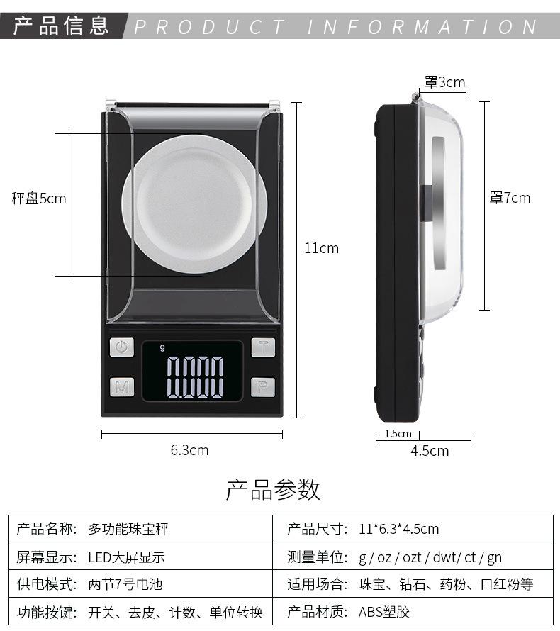 ● Diámetro del plato de la báscula: 5 cm Accesorios: pesas, pinzas, bandeja pequeña