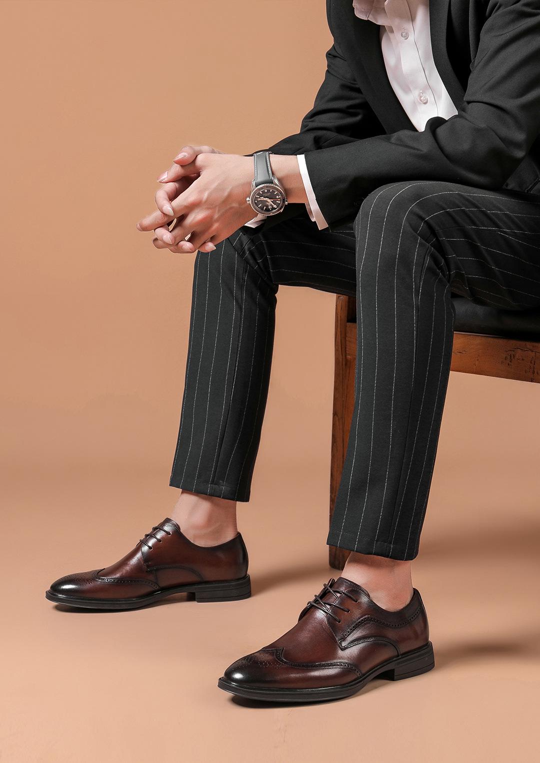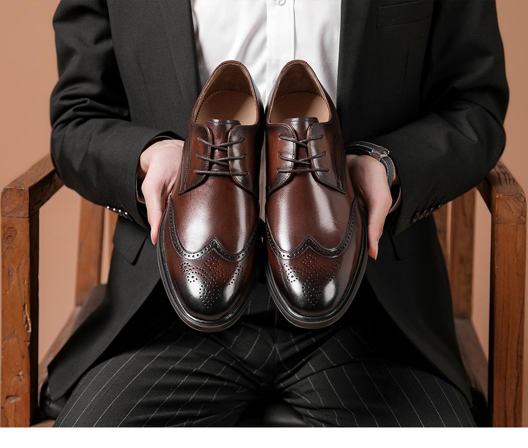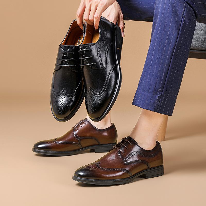 Zapatos de Piel Brogue Calados para Hombre, Piel de Vacuno de Primera Capa para Negocios Estilo Británico Zapatos de Boda, Zapatos de Piel Casuales para Hombre, Cómodos para el Trabajo