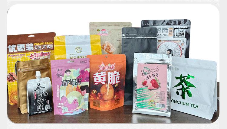 Bolsa de Empaque de Alimentos Personalizada con Patrón Impreso Colorido Lámina de Aluminio Auto-Sostenible con Boquilla Grado Alimenticio Comida Cocinada Té Bolsa al Vacío