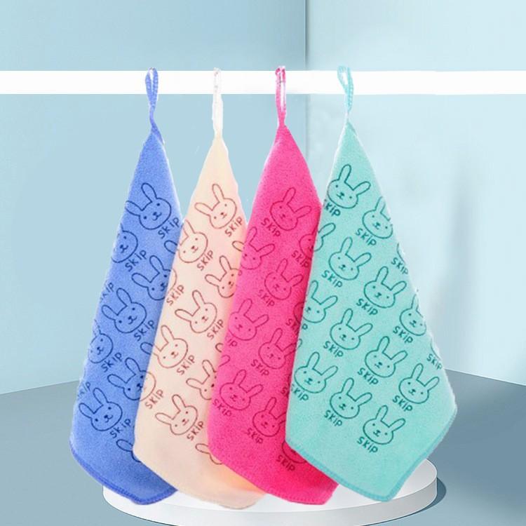 Toalla de fábrica al por mayor toalla cuadrada de microfibra de conejo jardín de niños estampado toalla de mano 25*25 absorbente toalla infantil