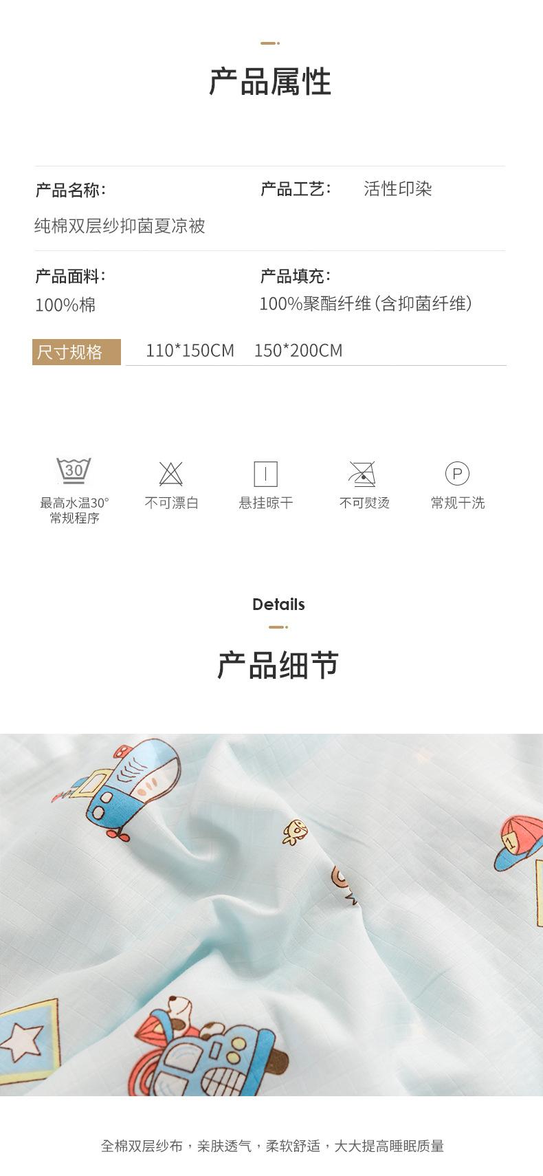 Nombre del producto: Edredón de verano antibacteriano de hilo doble capa de algodón puroEspecificaciones: 110*150CM, 150*200CM