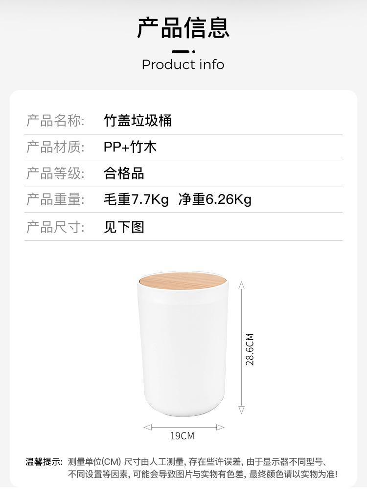 Papelera de bambú de color liso con tapa, papelera doméstica, papelera para inodoro, papelera para cocina y baño.