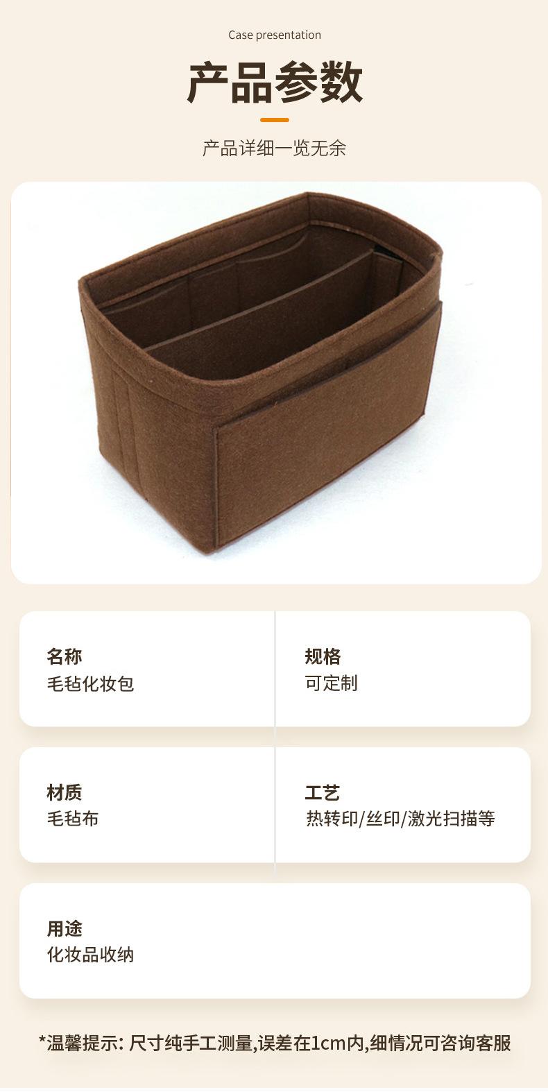Bolsa de fieltro para cosméticos, nueva y transfronteriza, extraíble, de gran capacidad y con múltiples bolsillos.