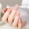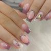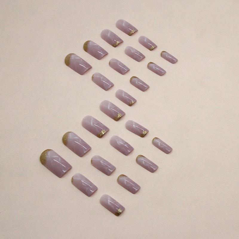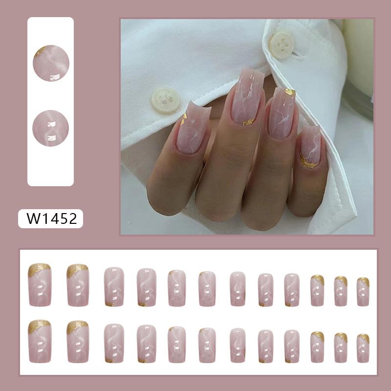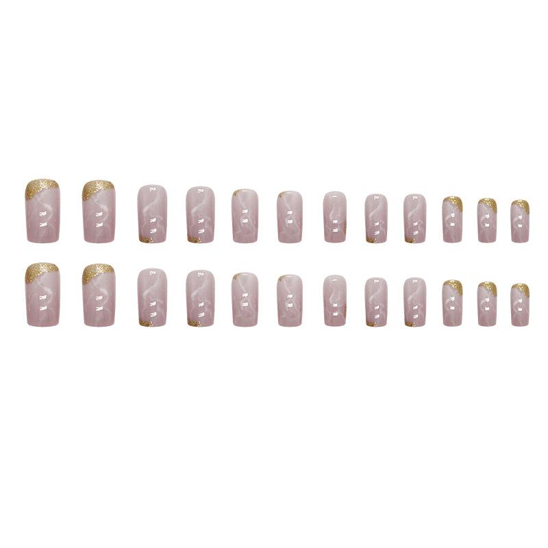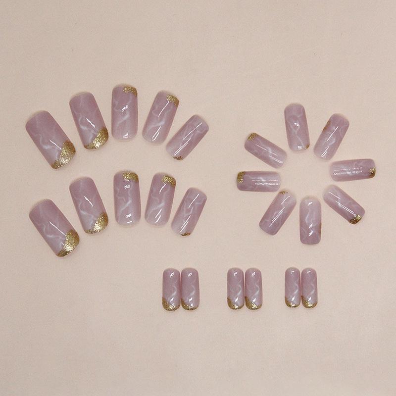 Elegante manicura mixta de uñas postizas blancas europeas y americanas cuadradas de longitud media en oro rosa marmolado dulce suave
