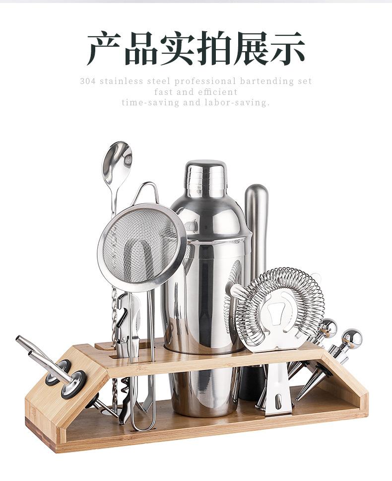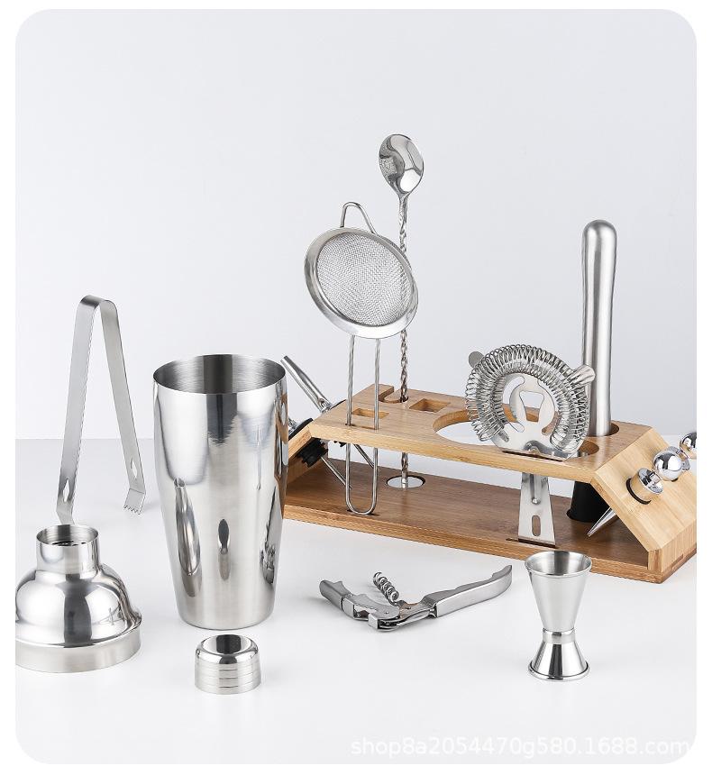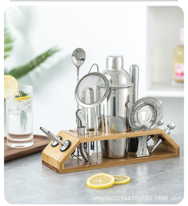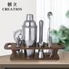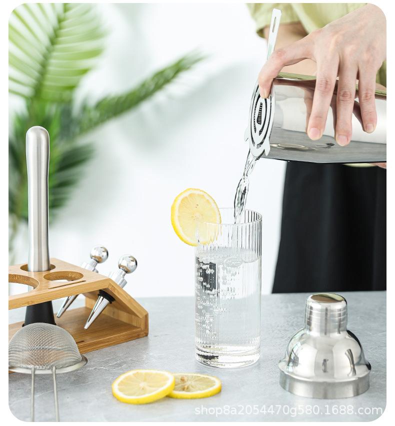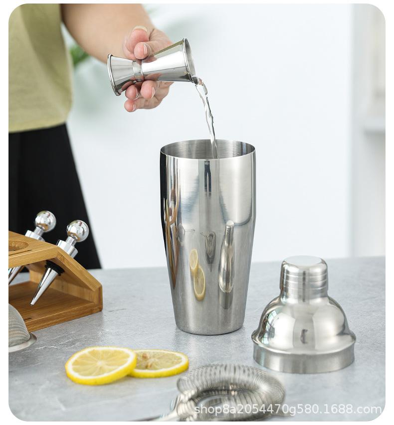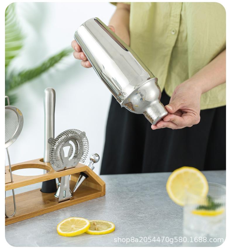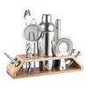 Set de Coctelera de Acero Inoxidable para Bar de Iniciación Herramienta de Bartending Coctelera Shaker con Base de Madera