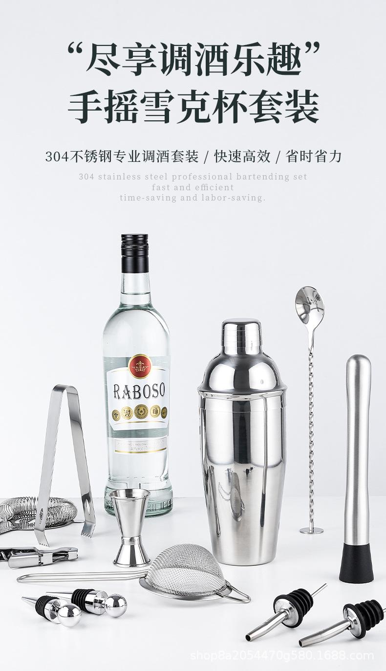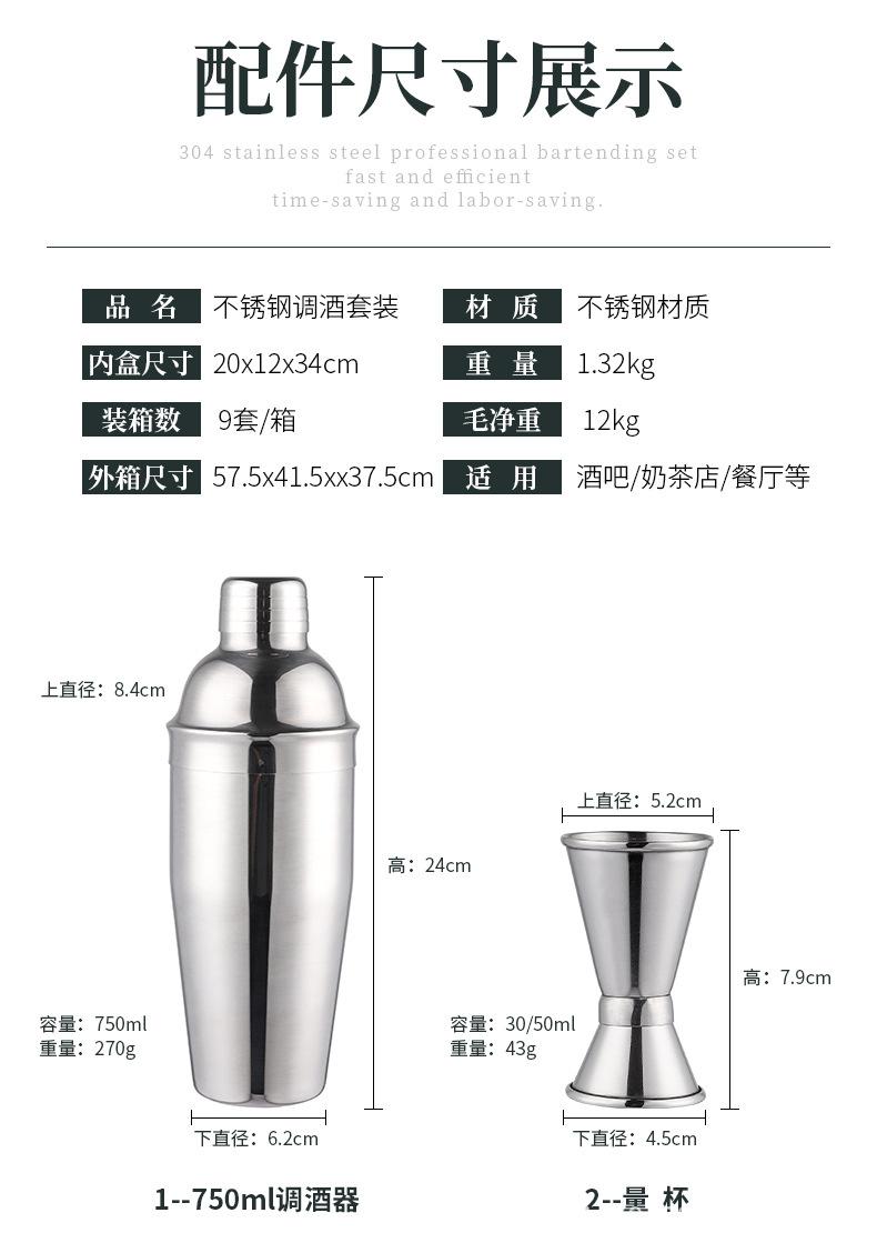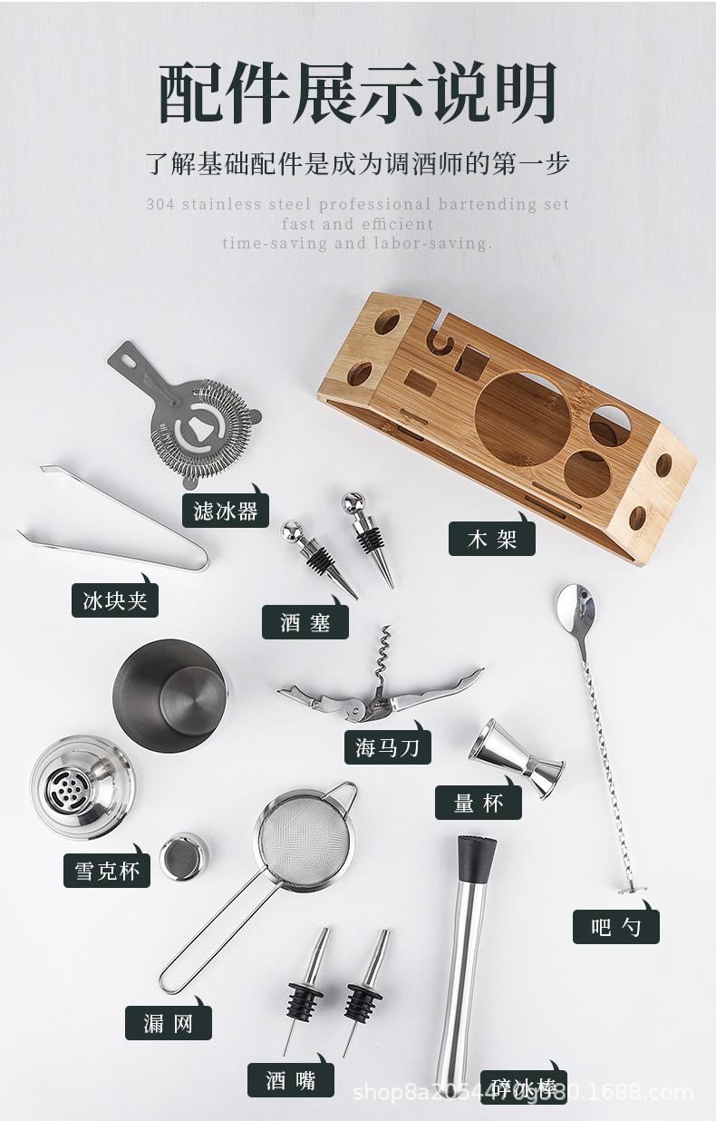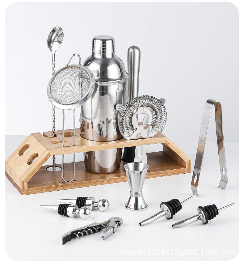 Set de Coctelera de Acero Inoxidable para Bar de Iniciación Herramienta de Bartending Coctelera Shaker con Base de Madera